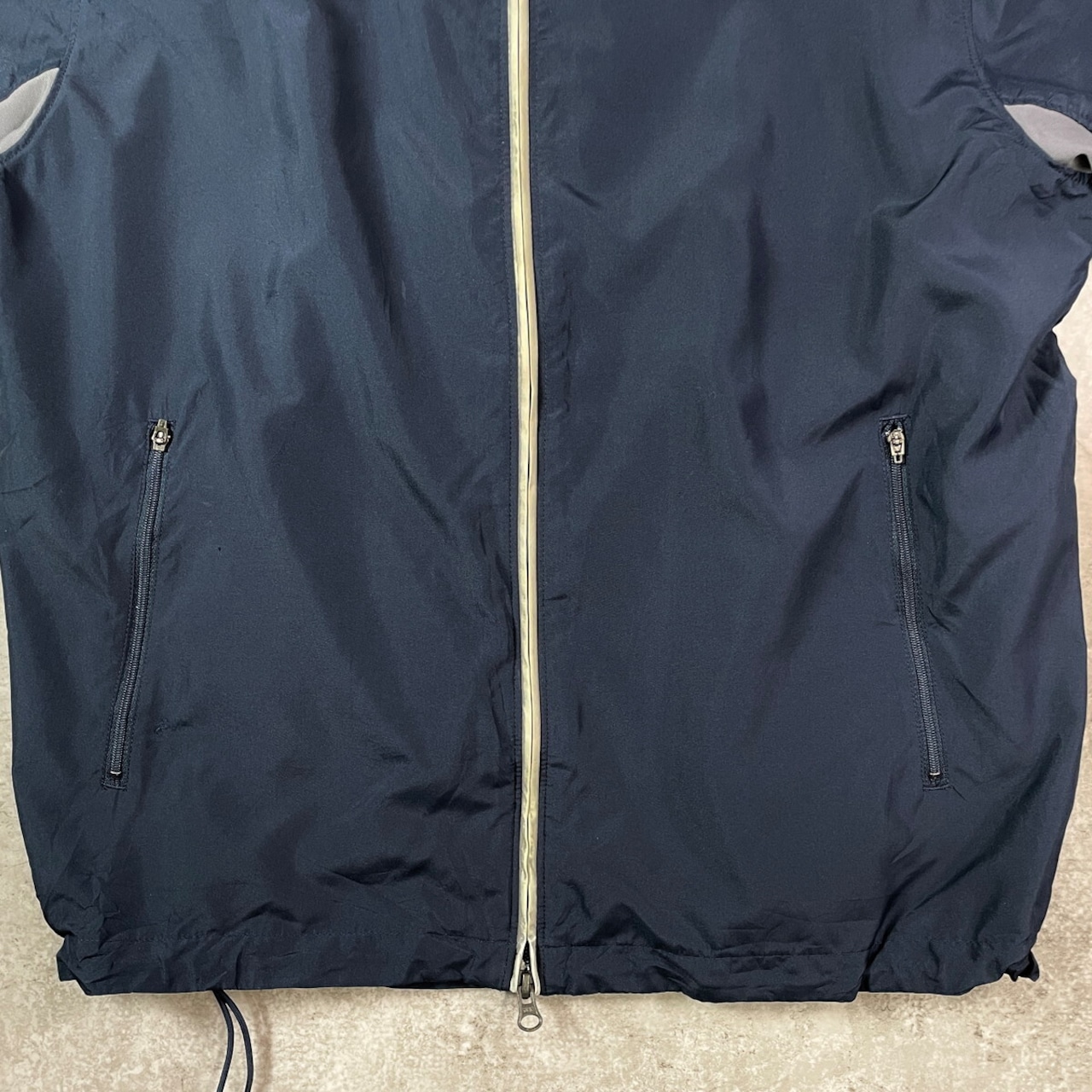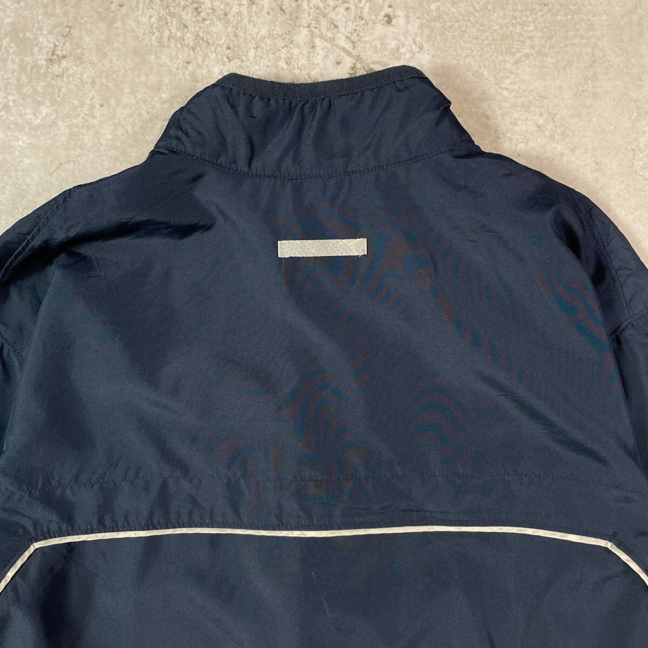 ■00年代 NIKE ナイキ スウォッシュロゴ刺繍 ダブルジップ ライトトラックジャケット メンズM 古着 00s Y2K VINTAGE ヴィンテージ ドローコード付き リフレクターライン 紺色【トラックジャケット・ジャージ】/ネイビー