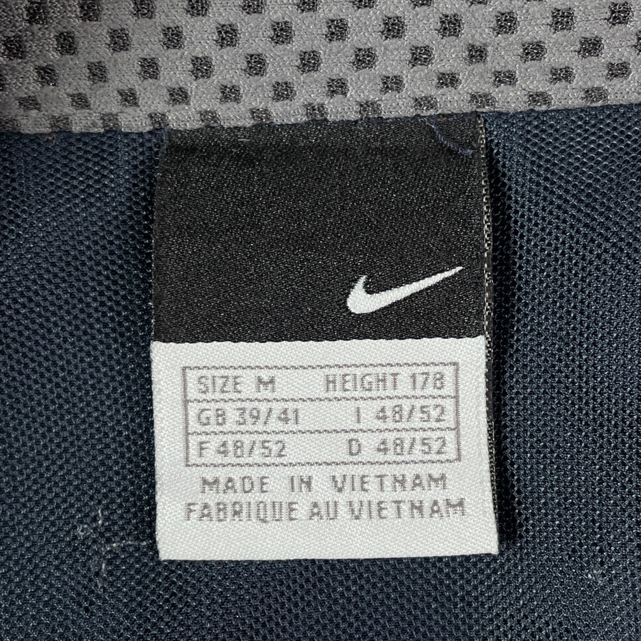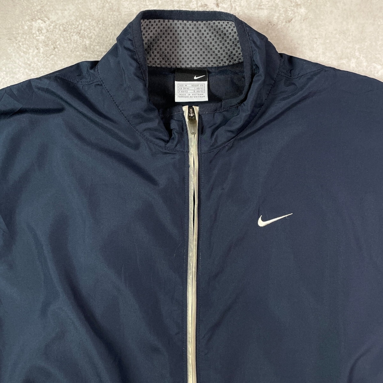 00年代 NIKE ナイキ スウォッシュロゴ刺繍 ダブルジップ ライトトラックジャケット メンズM 古着 00s Y2K VINTAGE ヴィンテージ ドローコード付き リフレクターライン 紺色【トラックジャケット・ジャージ】/ネイビー