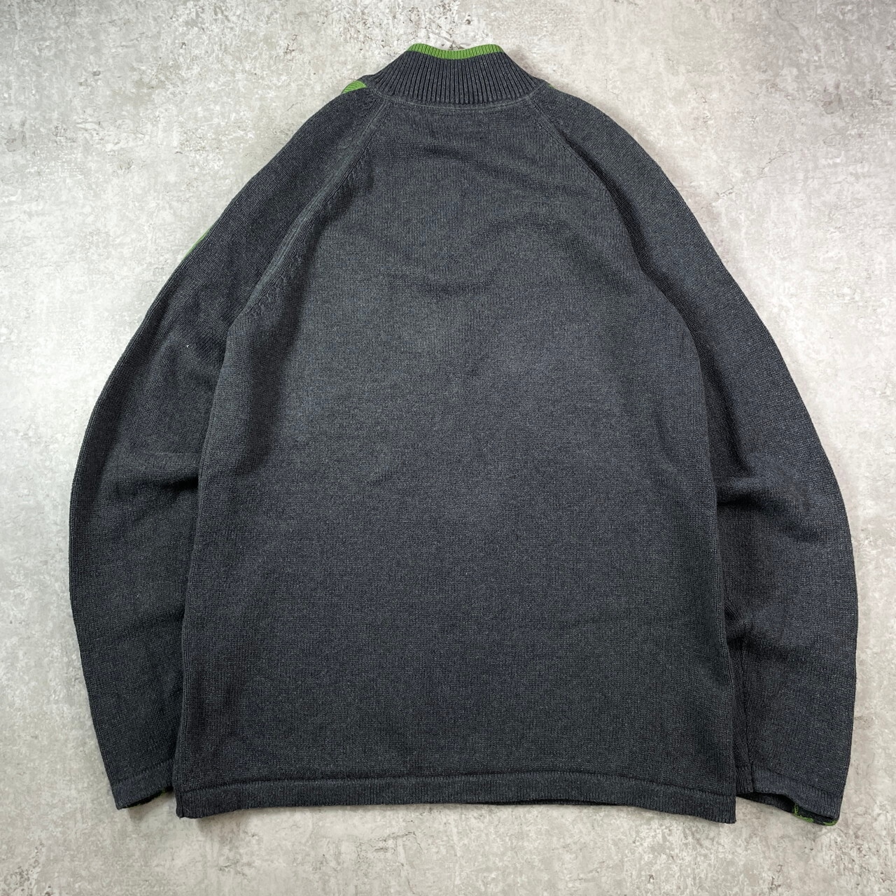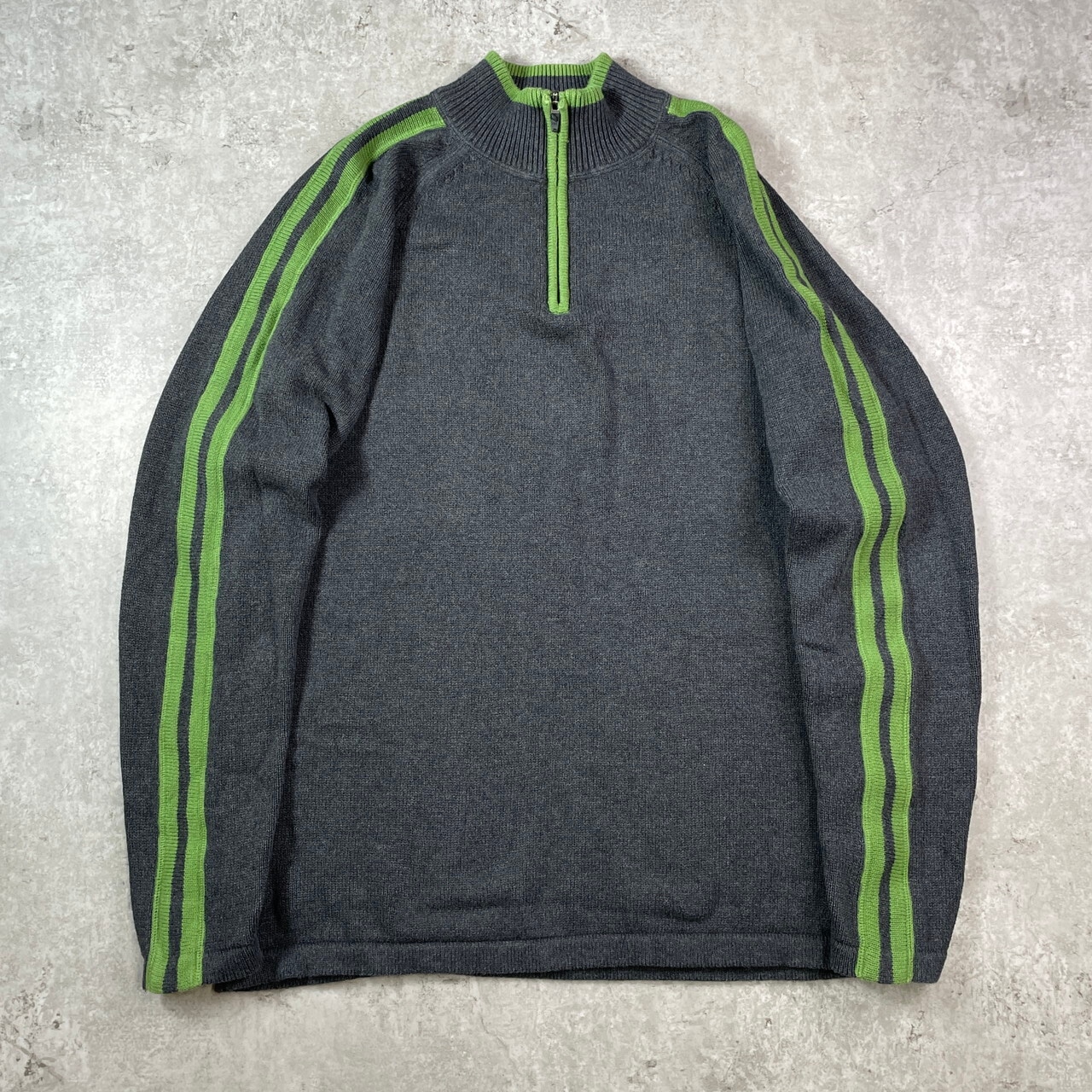 Eddie Bauer エディーバウアー ハーフジップ コットンニットセーター メンズXL相当 古着 スリーブライン ハイネック グリーン 黄緑【ニットセーター】/グレー