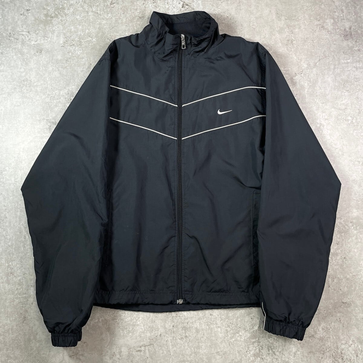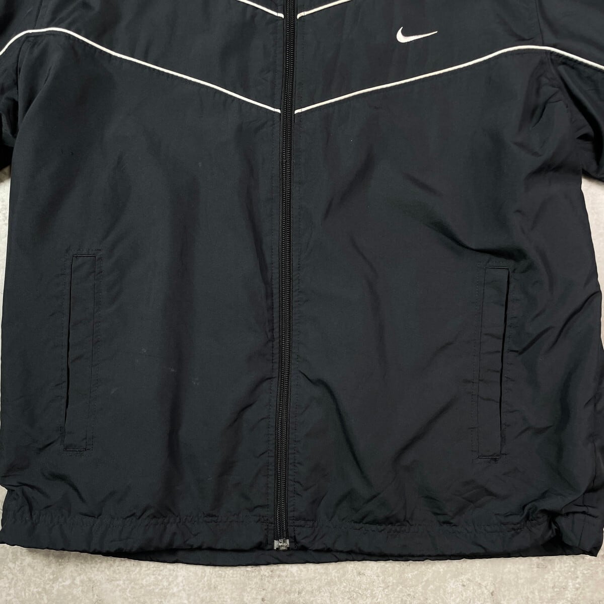 ■NIKE ナイキ スウォッシュロゴ刺繍 トラックジャケット メンズL 古着 ドローコード付き メッシュライナー 黒色【トラックジャケット・ジャージ】/ブラック