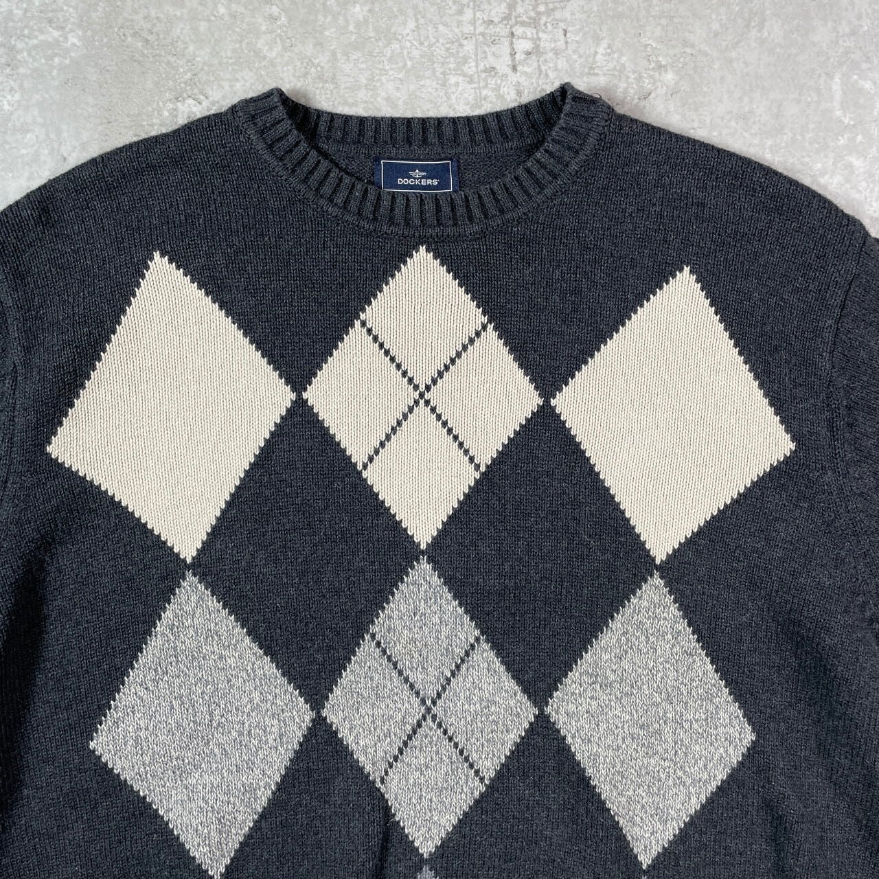 ■00年代 DOCKERS ドッカーズ アーガイルチェック コットンニットセーター メンズXL 古着 00s VINTAGE ヴィンテージ グレー ホワイト 白【ニットセーター】/グレー