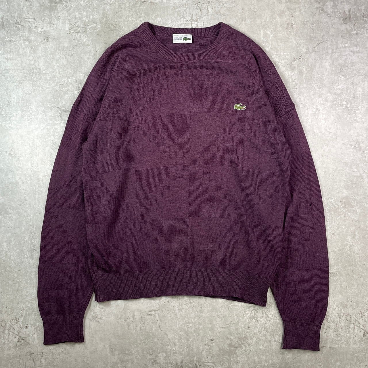 訳あり特価 80年代 フランス製 LACOSTE ラコステ コットンニットセーター メンズXL相当 古着 80s VINTAGE ヴィンテージ【ニットセーター】/パープル