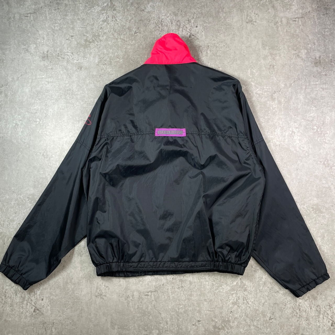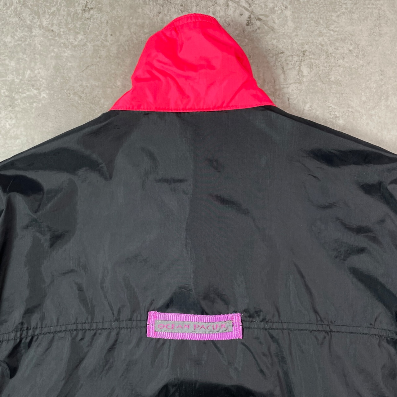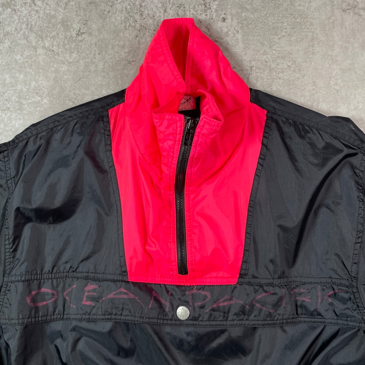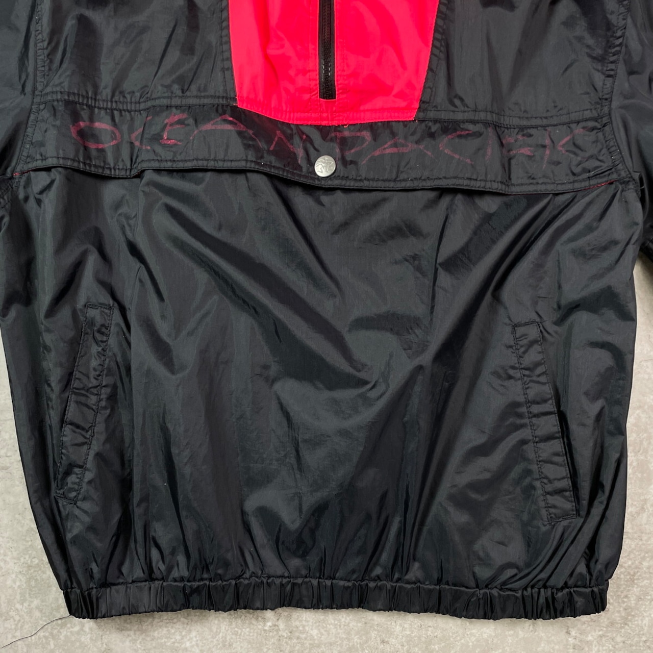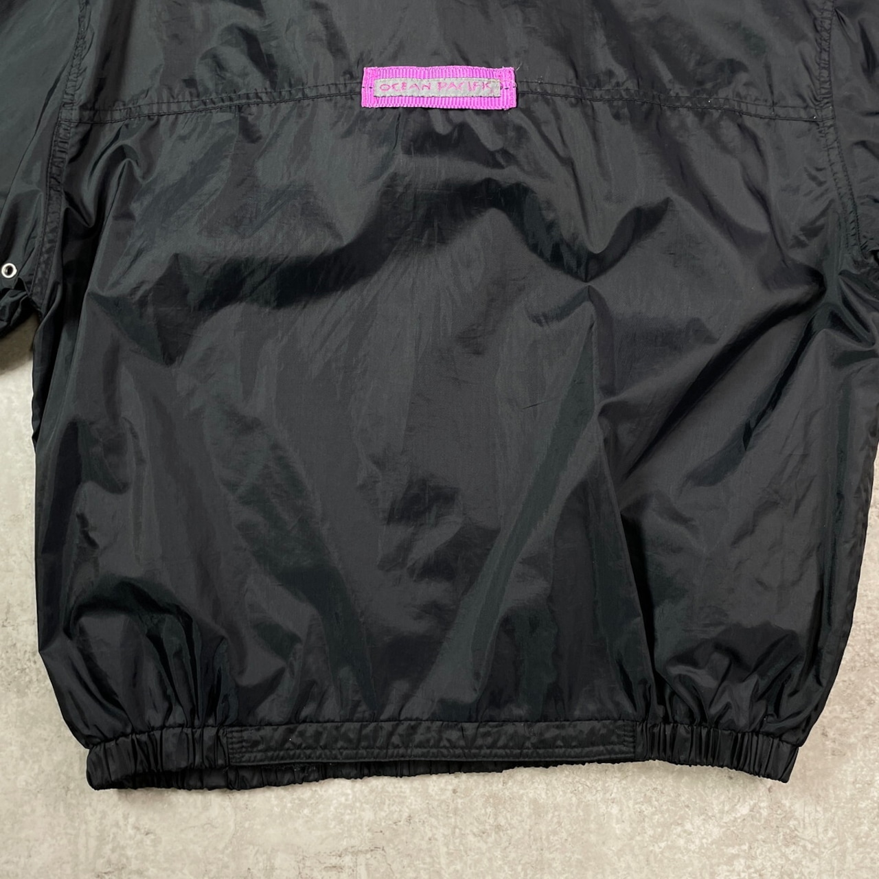 OCEAN PACIFIC ハーフジップ ナイロンジャケット ワンポイントロゴ刺繍 メンズL相当 古着 プルオーバー カンガルーポケット ツートンカラー 黒色 ショッキングピンク【ナイロンジャケット】/ブラック