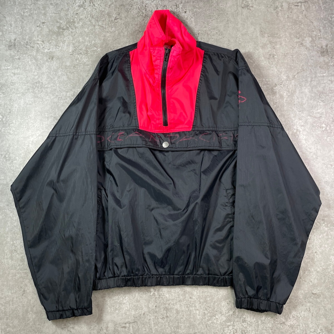 ■OCEAN PACIFIC ハーフジップ ナイロンジャケット ワンポイントロゴ刺繍 メンズL相当 古着 プルオーバー カンガルーポケット ツートンカラー 黒色 ショッキングピンク【ナイロンジャケット】/ブラック