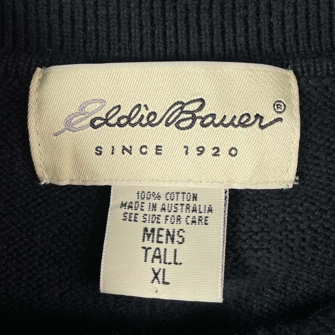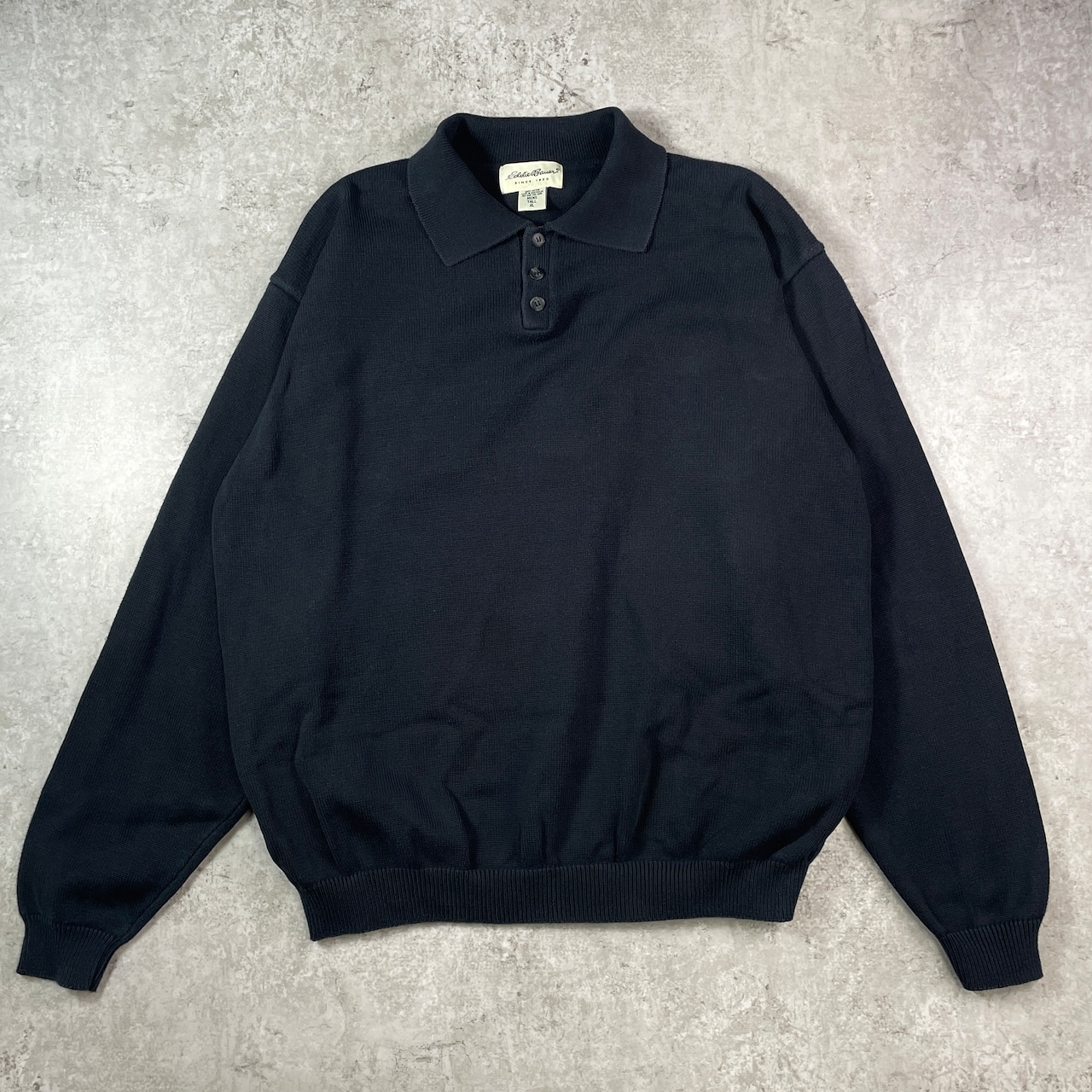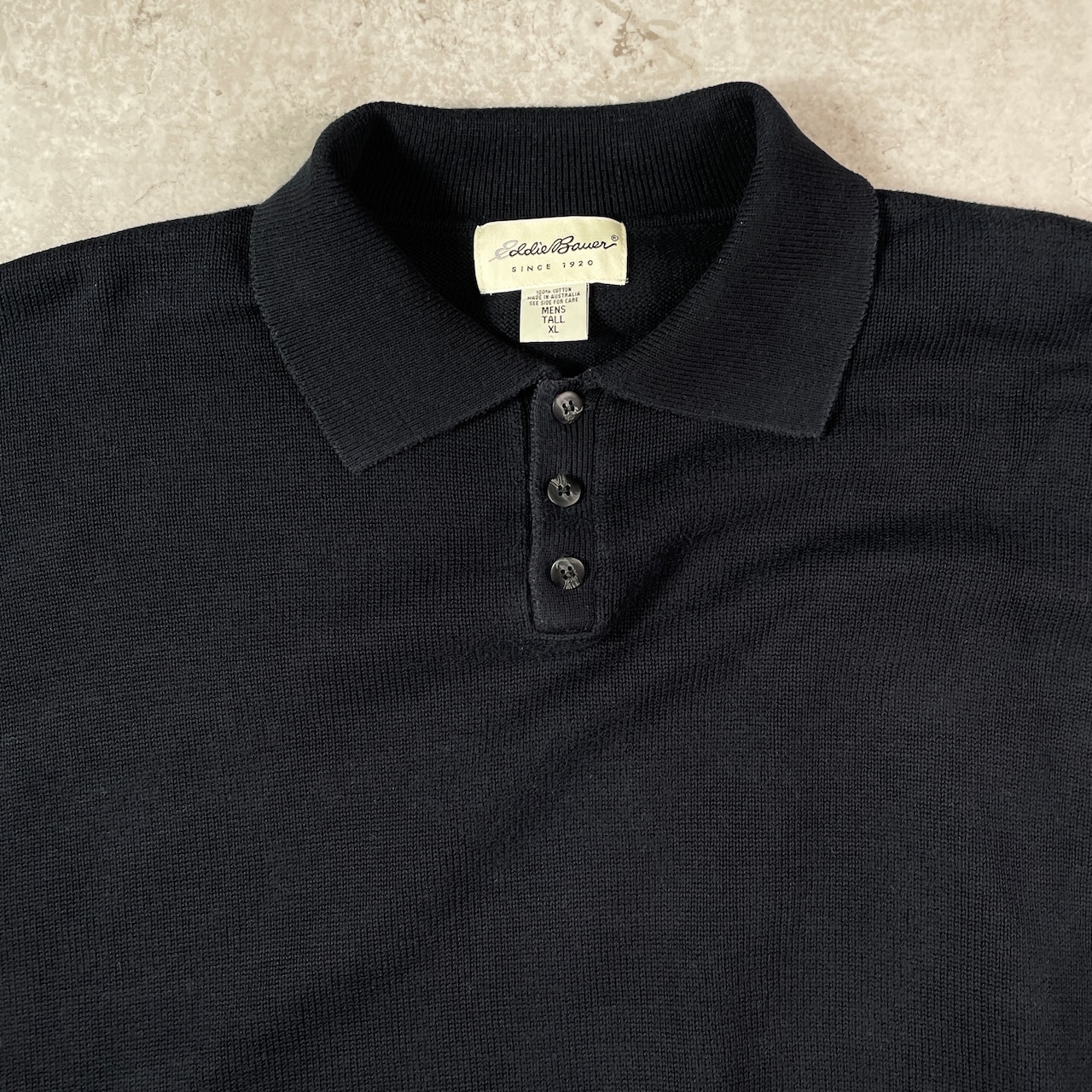 ■90年代 Eddie Bauer エディーバウアー 襟付き コットンニットセーター メンズXL 古着 90s VINTAGE ヴィンテージ 白タグ ニットポロ フェードブラック 墨黒【ニットセーター】/ブラック
