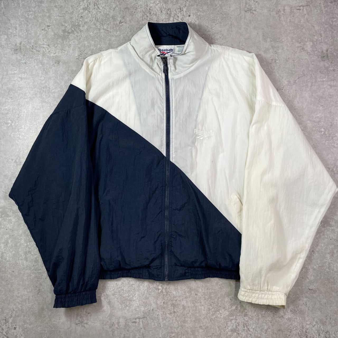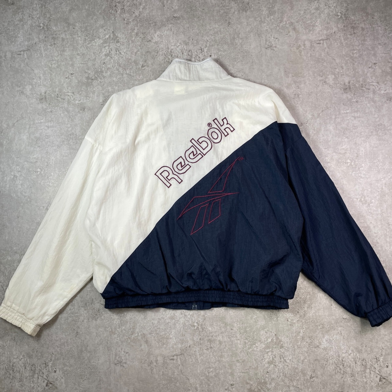 90年代 Reebok リーボック ナイロンジャケット ロゴ刺繍 メンズXL相当 古着 90s ヴィンテージ VINTAGE 切り替えデザイン ホワイト ネイビー【ナイロンジャケット】/マルチカラー