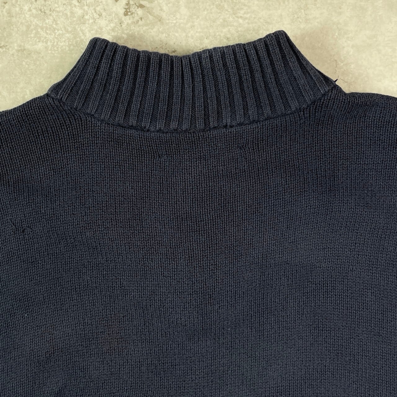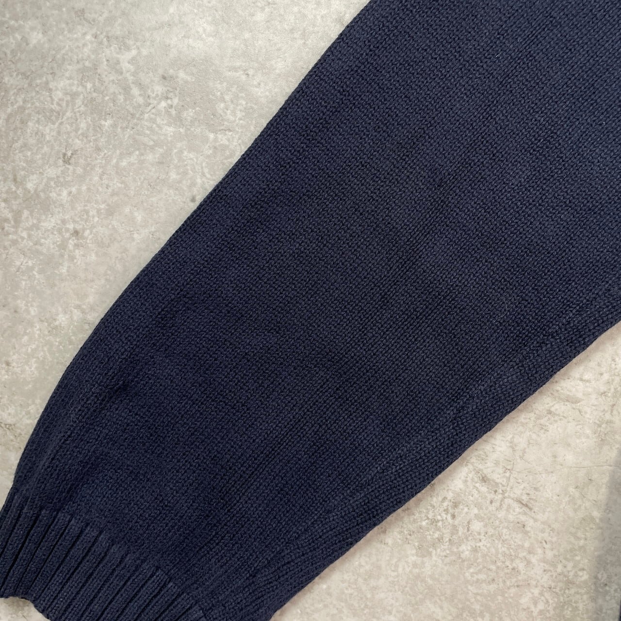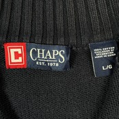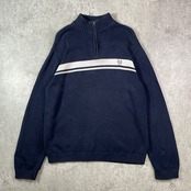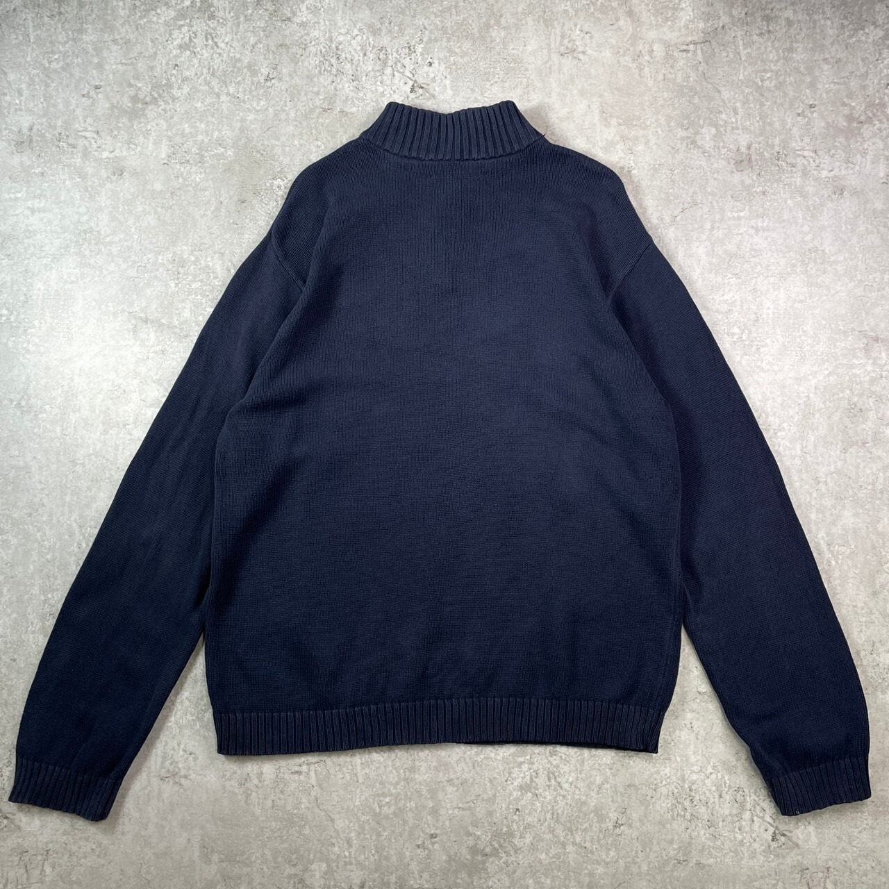 ■CHAPS チャップス ハーフジップ コットンニットセーター メンズXL相当 古着 フロントライン ワンポイントロゴ刺繍 ホワイト 紺色 白【ニットセーター】/ネイビー