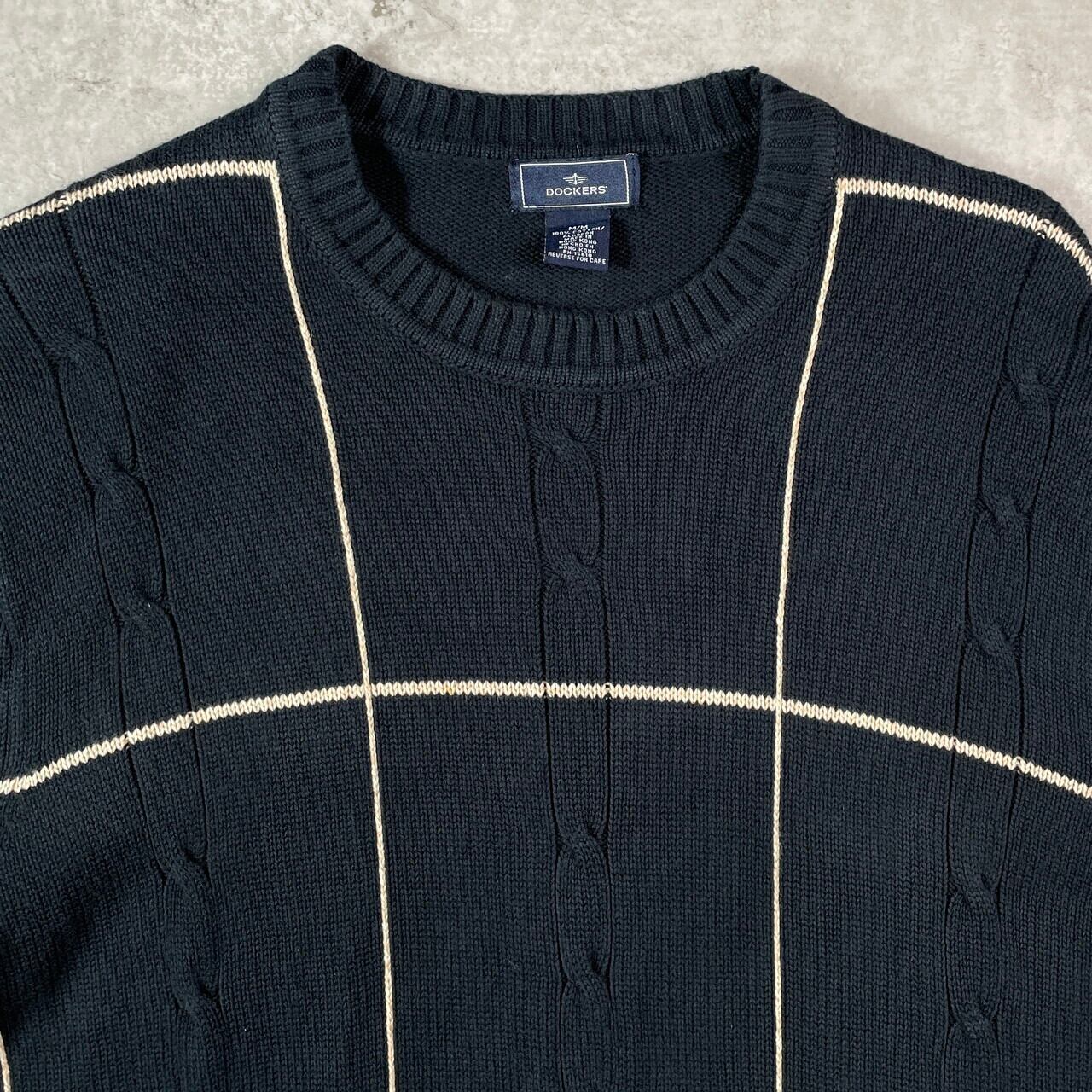00年代 DOCKERS ドッカーズ 格子チェック コットンニットセーター メンズL相当 古着 00s VINTAGE ヴィンテージ 黒【ニットセーター】/ブラック