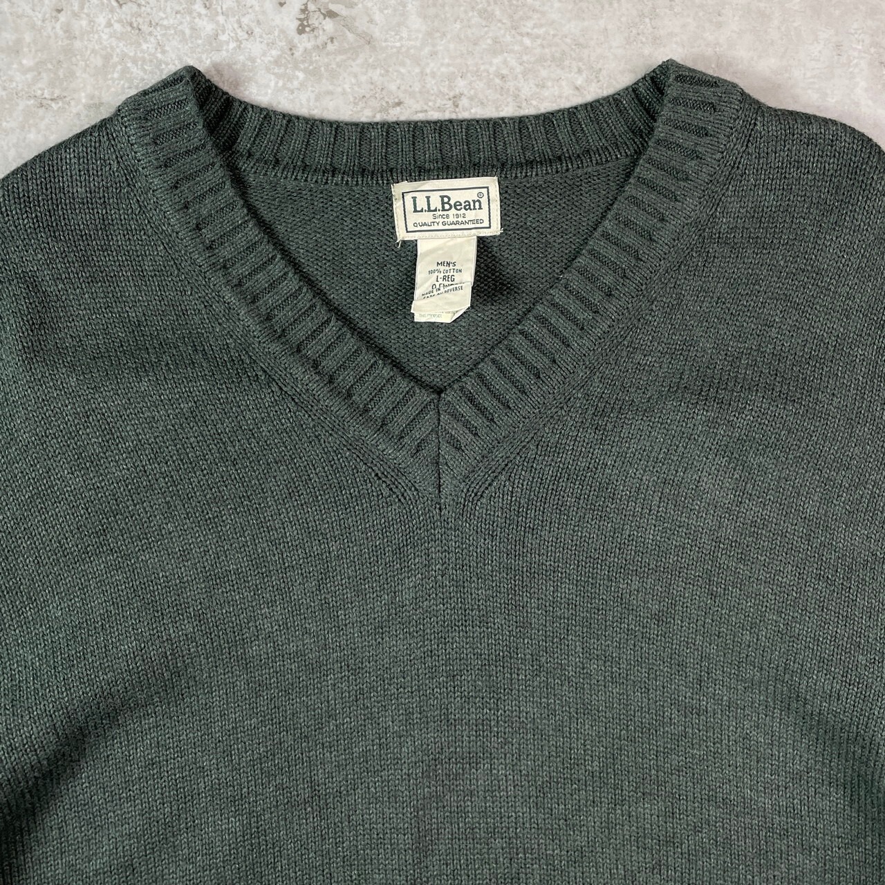 L.L.Bean エルエルビーン Vネック コットンニットセーター メンズXL相当 古着 緑【ニットセーター】/グリーン