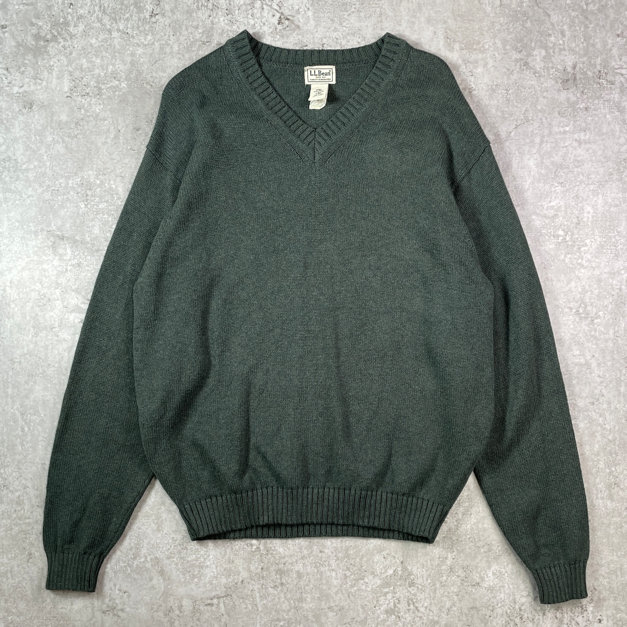 ■L.L.Bean エルエルビーン Vネック コットンニットセーター メンズXL相当 古着 緑【ニットセーター】/グリーン