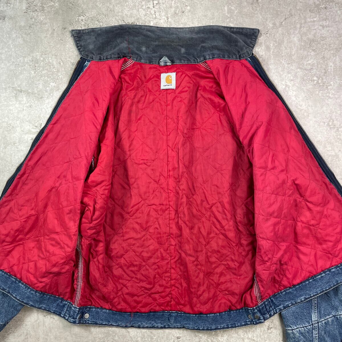 ■80年代 Carhartt カーハート デニム デトロイトジャケット メンズXL相当 古着 80s ヴィンテージ VINTAGE アメカジ キルティングライナー コーデュロイ襟 青色【ワークジャケット】/ブルー