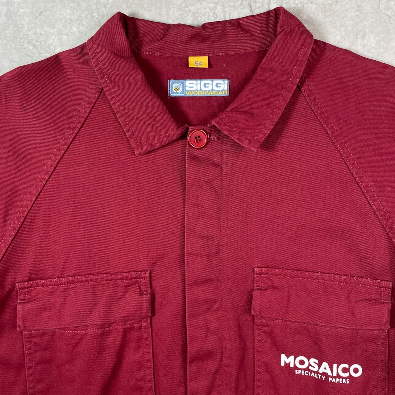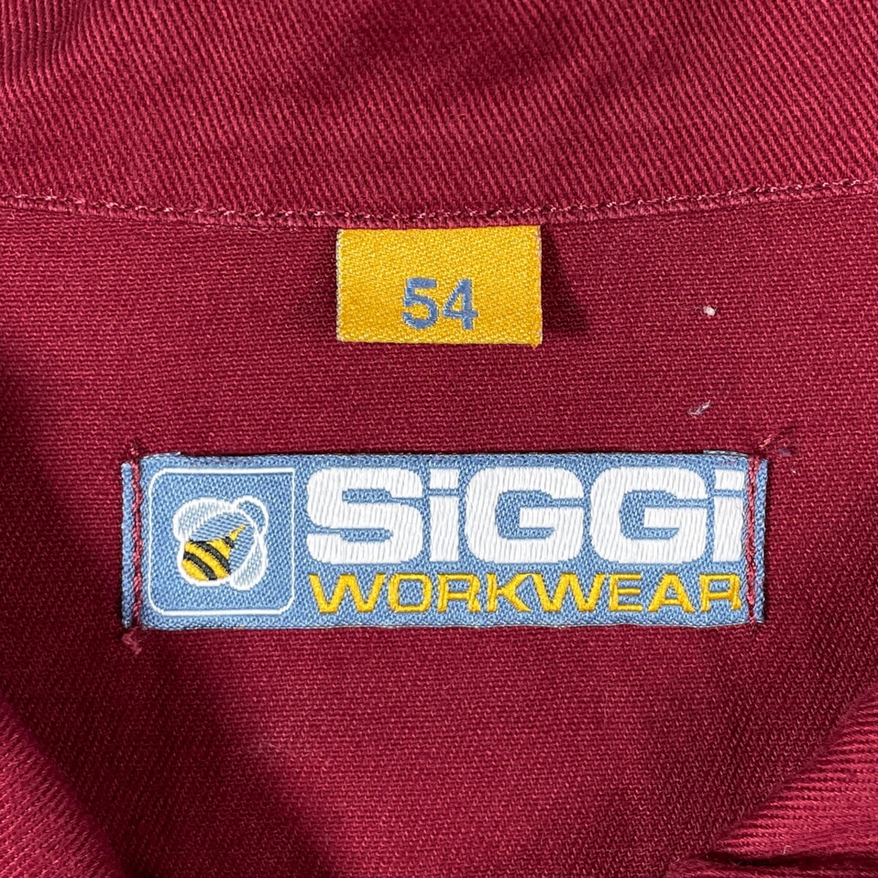 ■SiGGi ユーロワークジャケット 企業ロゴプリント メンズXL相当 古着 ラグランスリーブ ダブルポケット ボルドー【ワークジャケット】/ワインレッド