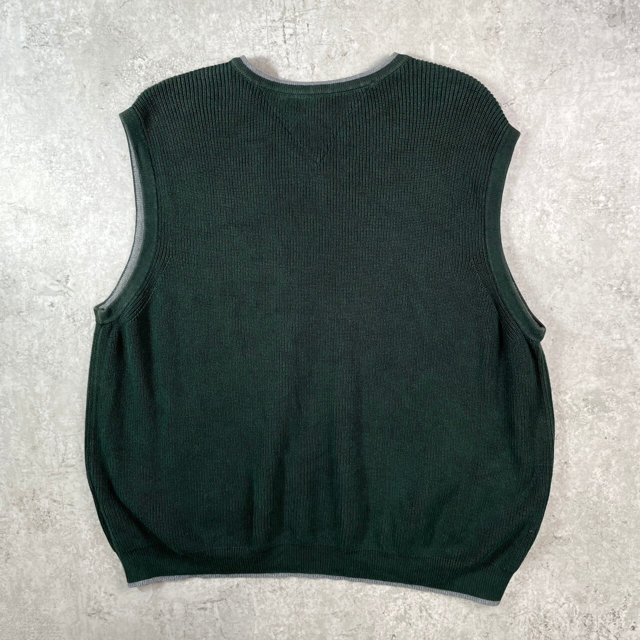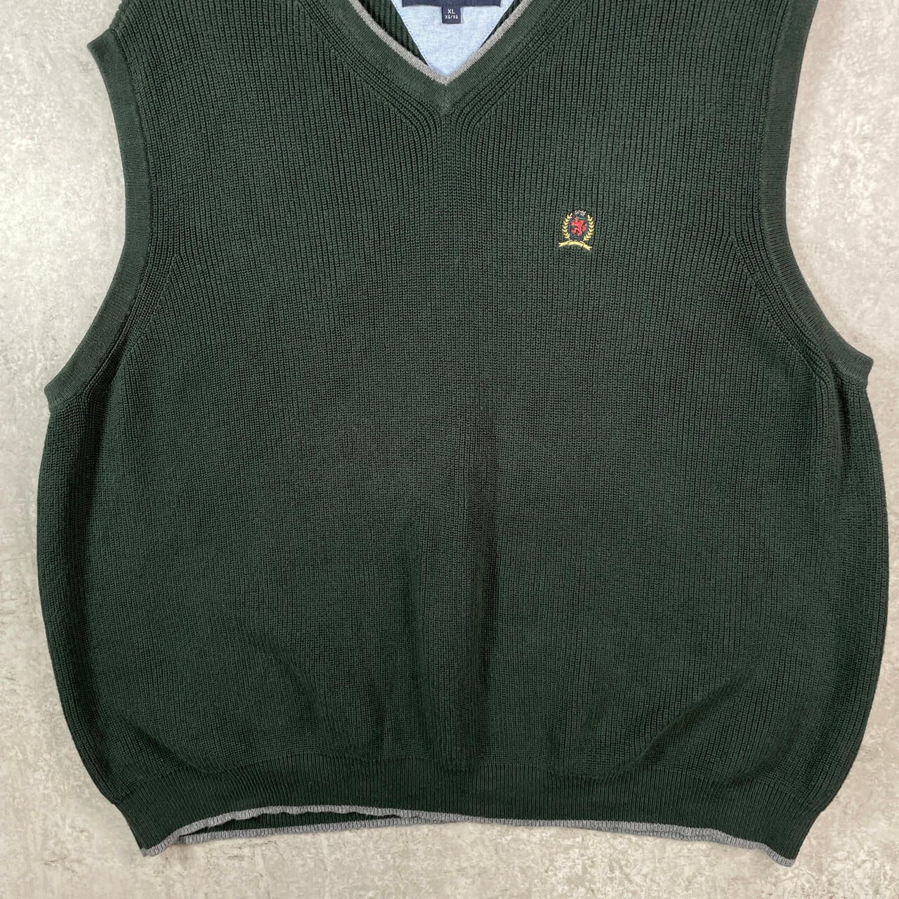 00年代 TOMMY HILFIGER トミーヒルフィガー Vネック コットンニットベスト メンズXL 古着 90s VINTAGE ヴィンテージ 緑【ニットセーター】/グリーン