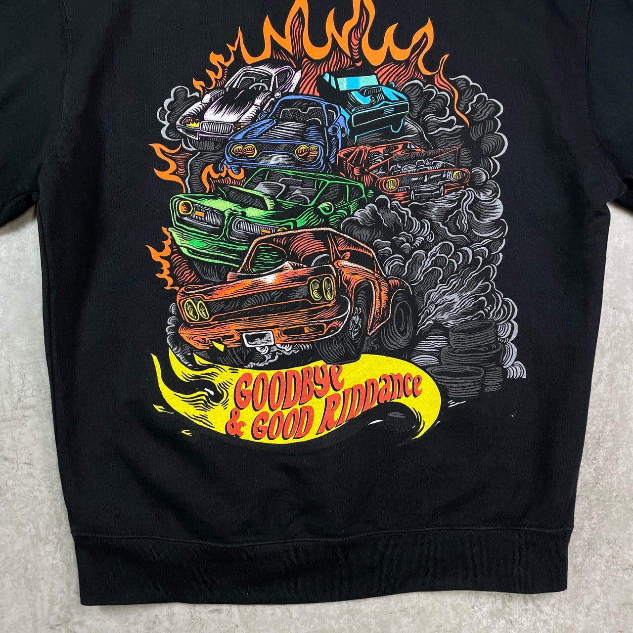 ■JUICE WRLD ジュースワールド バンド スウェットパーカー メンズL 古着 袖プリ GOODBYE & GOOD RIDDANCE ファイヤーパターン ホットロッド 車 フーディー 黒【パーカー】/ブラック
