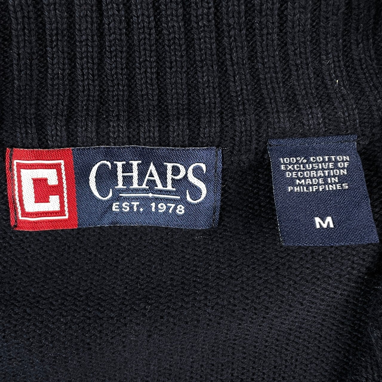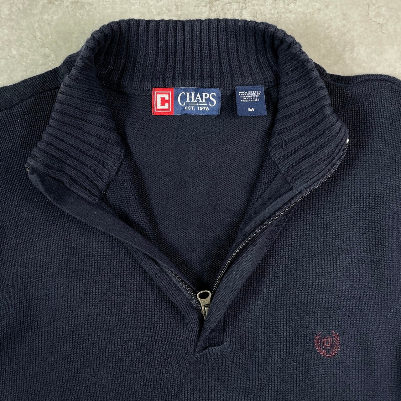 CHAPS チャップス ハーフジップ コットンニットセーター メンズL相当 古着 ワンポイントロゴ刺繍 紺色【ニットセーター】/ネイビー