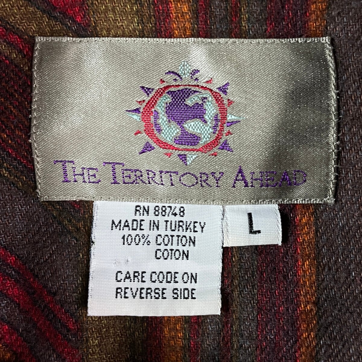 ■90年代 THE TERRITORY AHEAD 総柄シャツ プリントネルシャツ メンズXL相当 古着 90s VINTAGE ヴィンテージ ネイティブ レッド オレンジ グレー【長袖シャツ】/マルチカラー