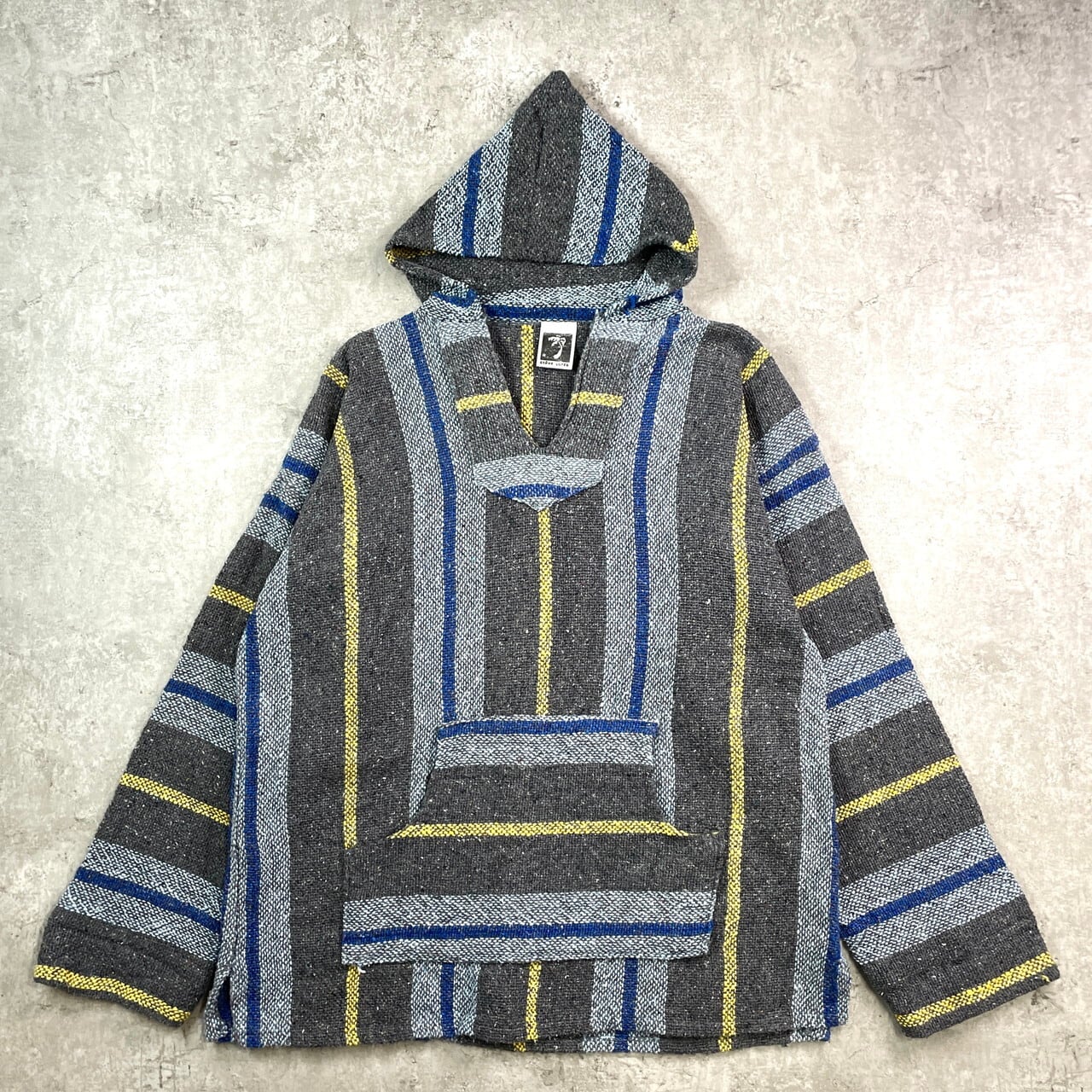 SENOR LOPEZ メキシカンパーカー メンズ2XL相当 古着 プルオーバーパーカー ラグ フーディー メキパ ビッグサイズ 大きいサイズ グレー ライトブルー イエロー【パーカー】/マルチカラー