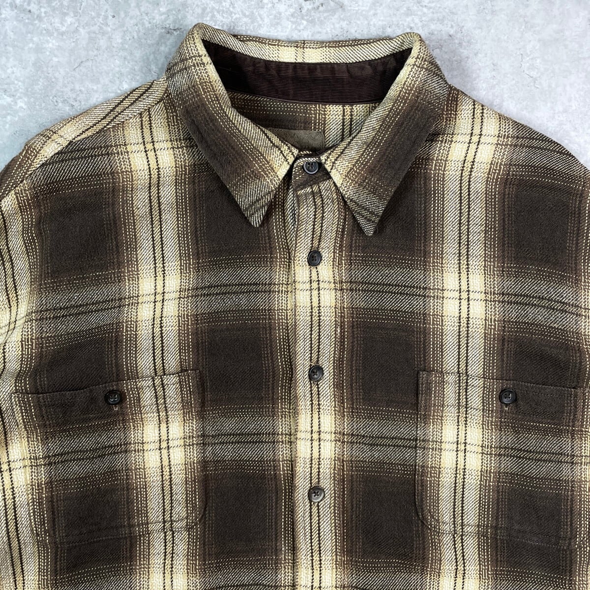 90年代 ST. JOHN'S BAY セントジョンズベイ オンブレチェックシャツ ヘビーフランネルシャツ メンズ2XL相当 古着 90s VINTAGE ヴィンテージ アメカジ ダブルポケット ビッグサイズ 大きいサイズ 茶色 ベージュ ホワイト【長袖シャツ】/ブラウン