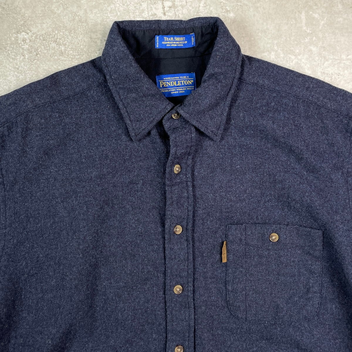 PENDLETON ペンドルトン ウールシャツ エルボーパッチ メンズL 古着 アメカジ 胸ポケ付き 紺色【長袖シャツ】/ネイビー