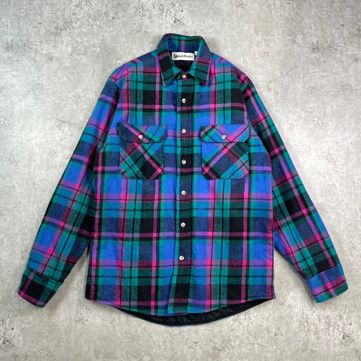 90年代 USA製 GANDER MOUNTAIN チェック フランネルシャツ メンズM 古着 90s VINTAGE ヴィンテージ アメカジ キルティングライナー ダブルポケット パープル グリーン ブラック ネイビー【長袖シャツ】/マルチカラー