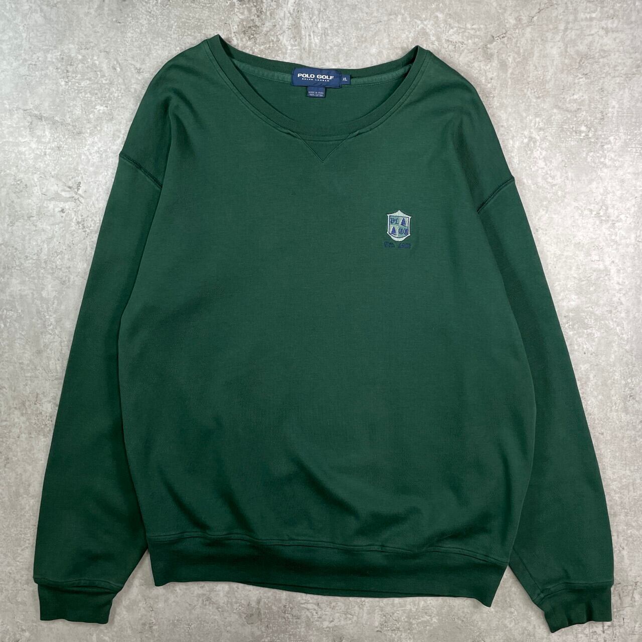 ■00年代 POLO GOLF RALPH LAUREN ポロゴルフ ラルフローレン スウェットシャツ メンズXL 古着 00s ヴィンテージ VINTAGE 前Vガゼット ワンポイント刺繍 緑【スウェットシャツ】/グリーン