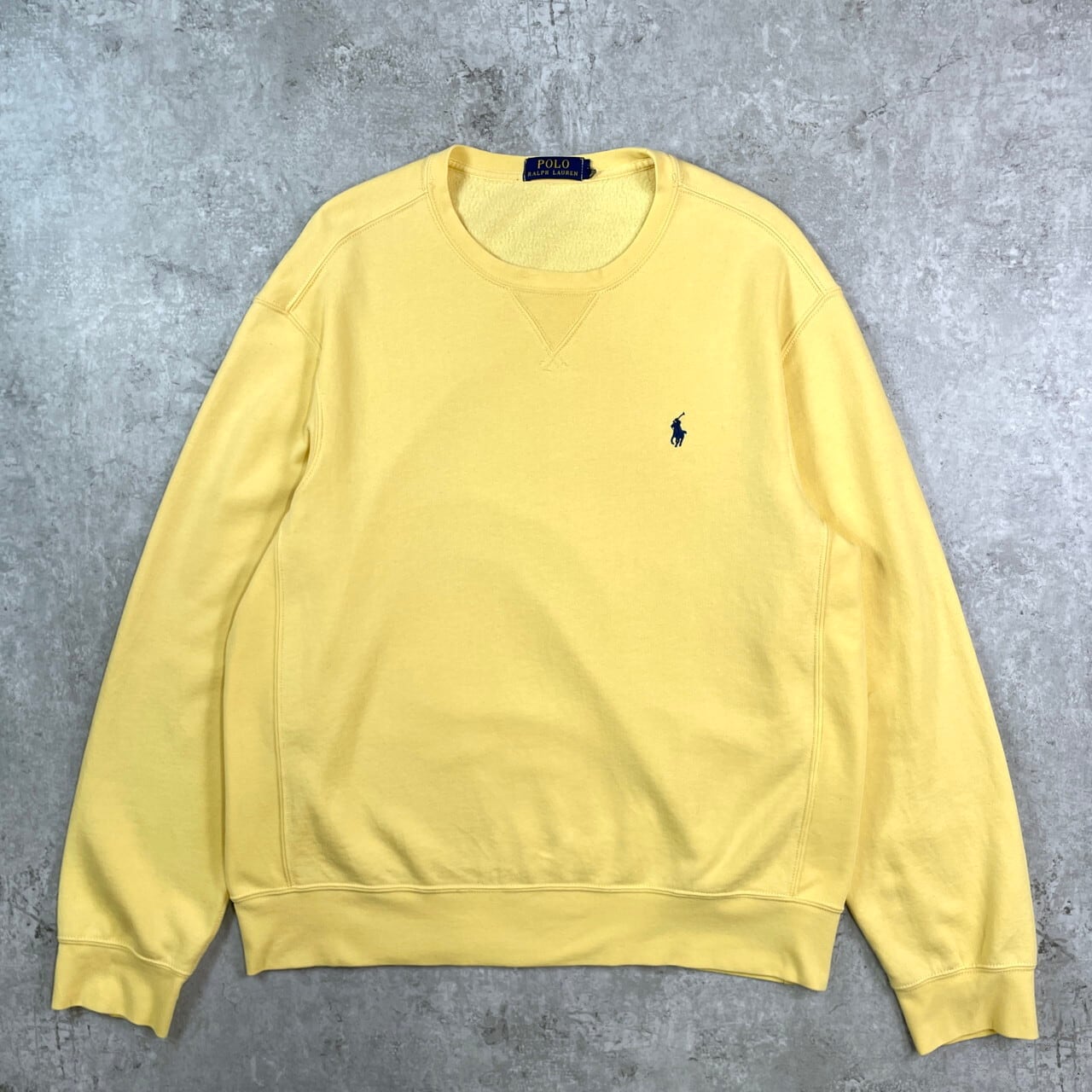 POLO RALPH LAUREN ポロラルフローレン リバースタイプ スウェットシャツ メンズXL相当 古着 クルーネック トレーナー ワンポイントロゴ刺繍 前Vガゼット 黄色【スウェット】/イエロー