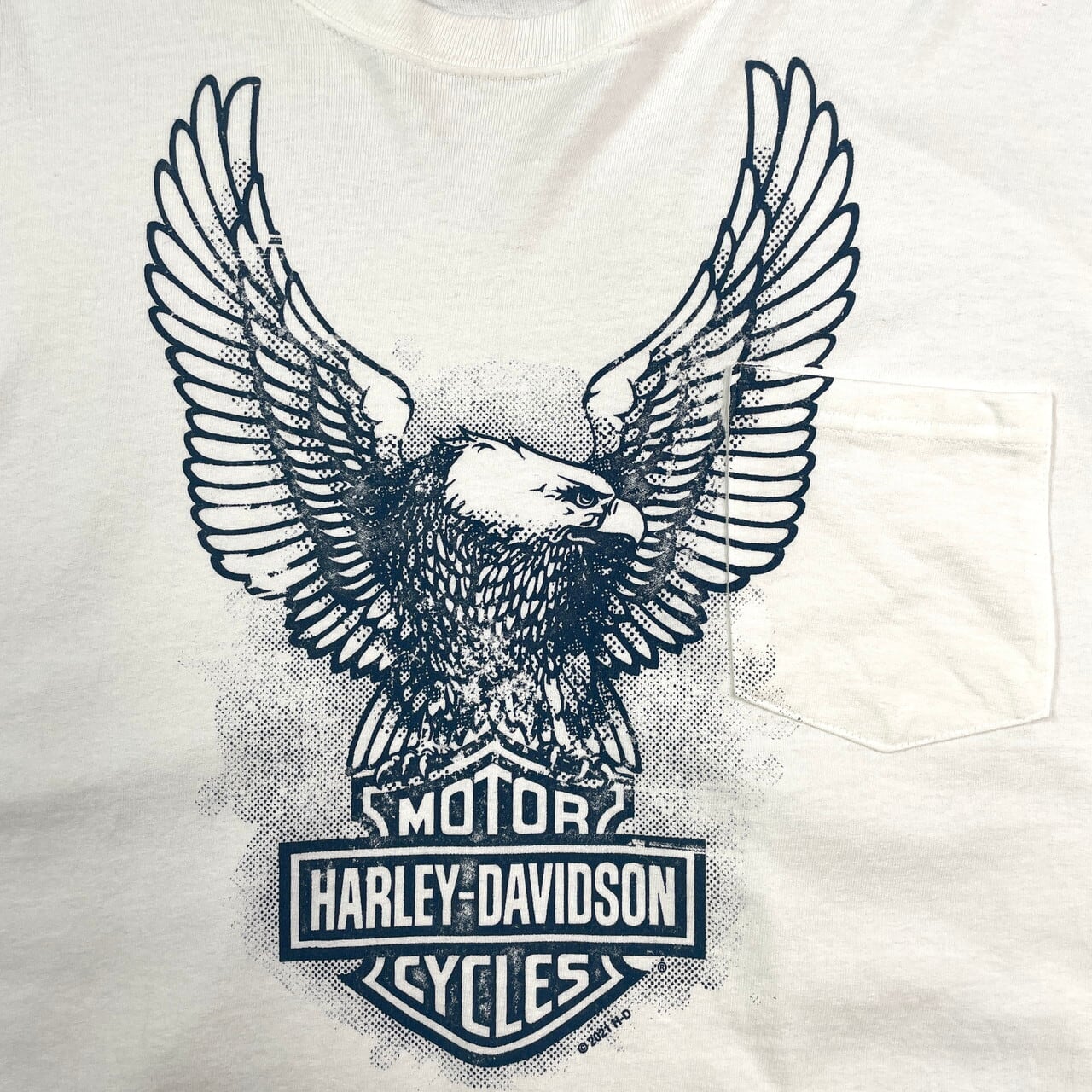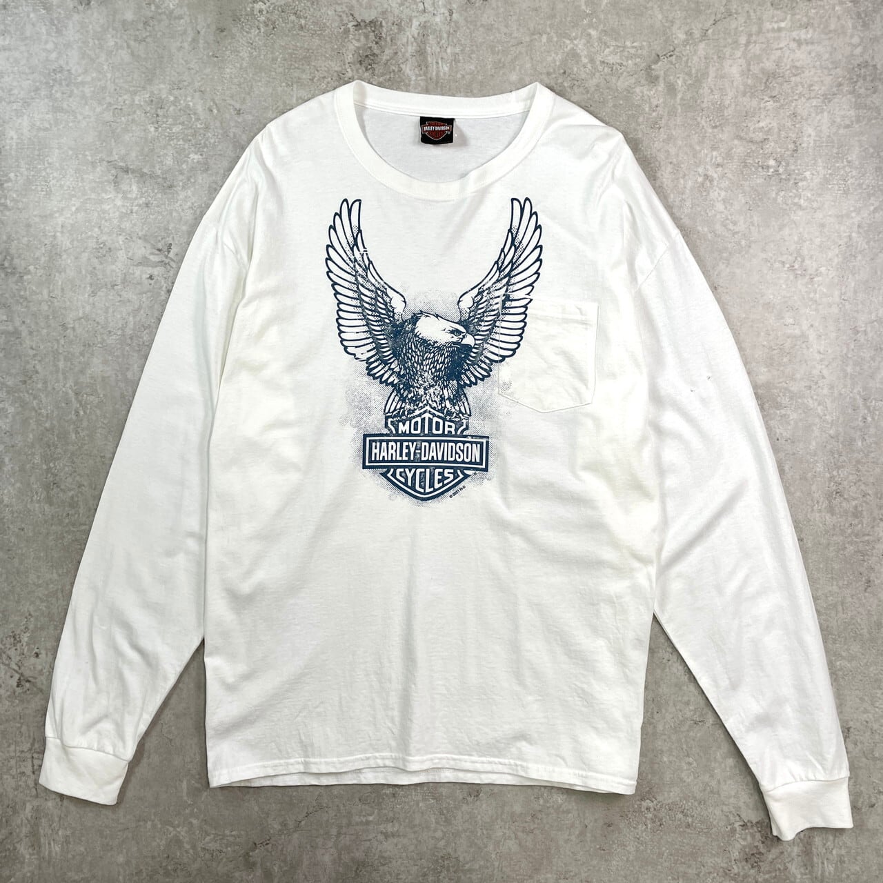 ■Harley-Davidson ハーレーダビッドソン イーグルプリント ロングTシャツ ロンT メンズXL 古着 ポケT Y2K バイク モーターサイクル 白【ロングTシャツ】/ホワイト