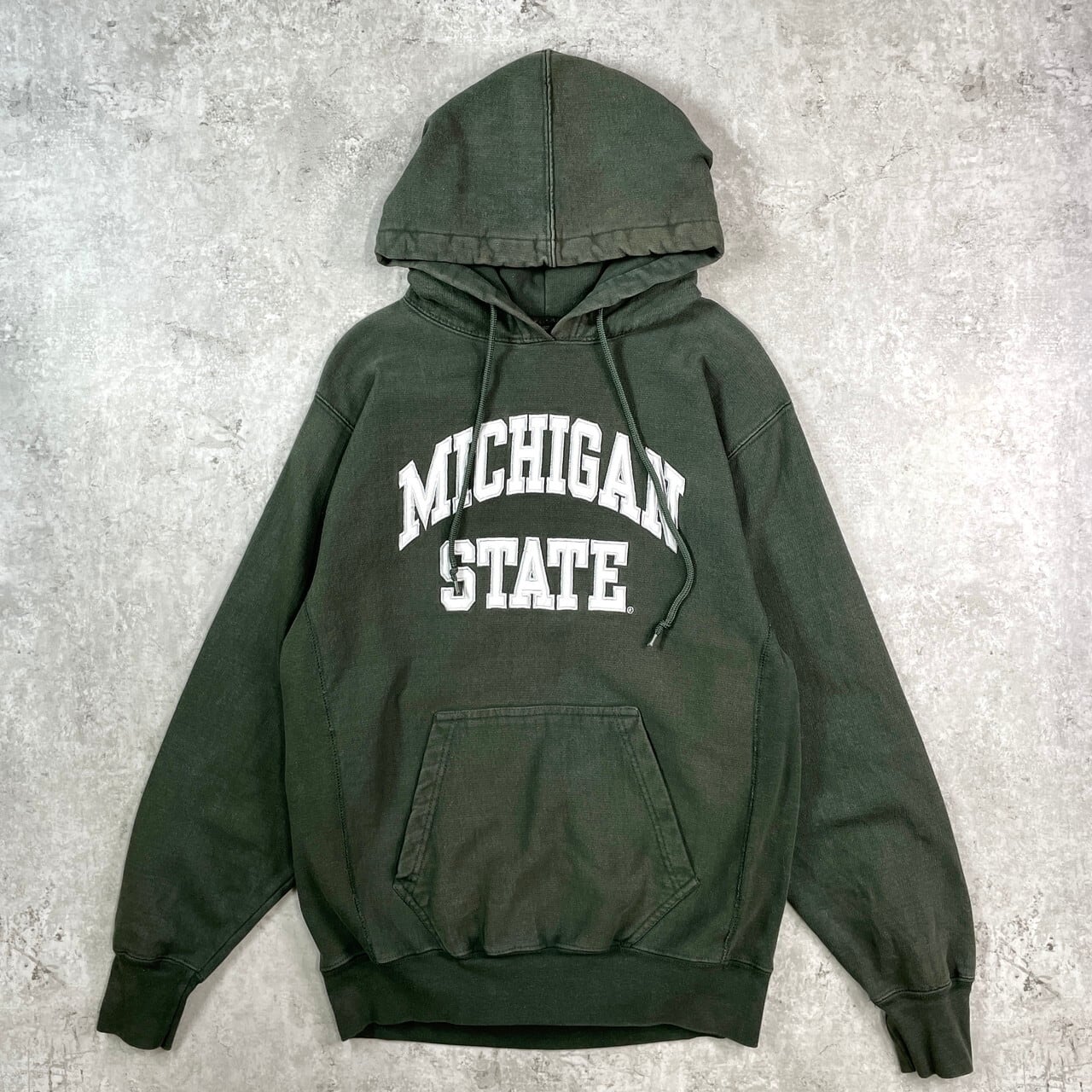 00年代 STEVE&BARRY'S カレッジプリント リバースタイプ スウェットパーカー メンズM相当 古着 00s VINTRAGE ヴィンテージ アメカジ MICHIGAN STATE ミシガン 緑【スウェット】/グリーン