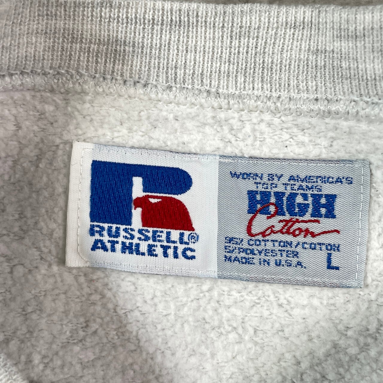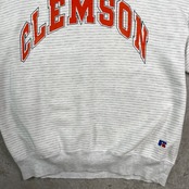 90年代 USA製 RUSSELL ATHLETIC ラッセル ボーダー CLEMSON カレッジプリント スウェットシャツ メンズXL相当 古着 90s ヴィンテージ VINTAGE 前Vガゼット アメカジ トレーナー ライトグレー ホワイト【スウェット】/マルチカラー