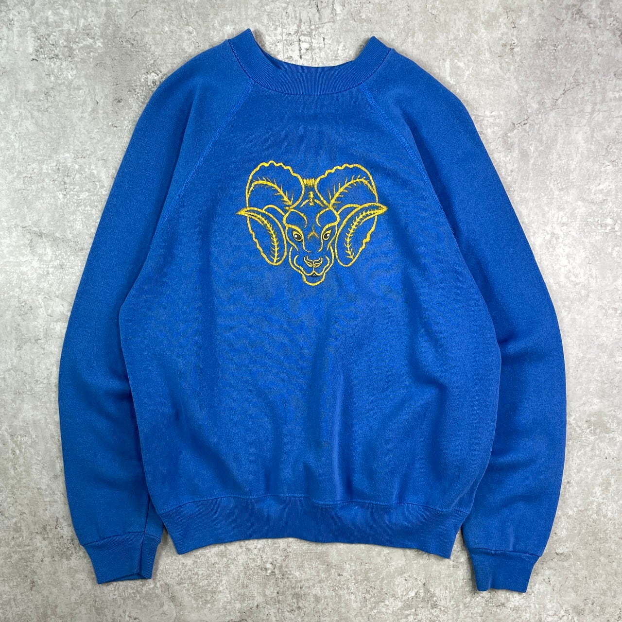 80年代 USA製 TULTEX ハンドペイント スウェットシャツ メンズM相当 古着 80s ヴィンテージ VINTAGE トレーナー ラグランスリーブ アニマル 青【スウェット】/ブルー