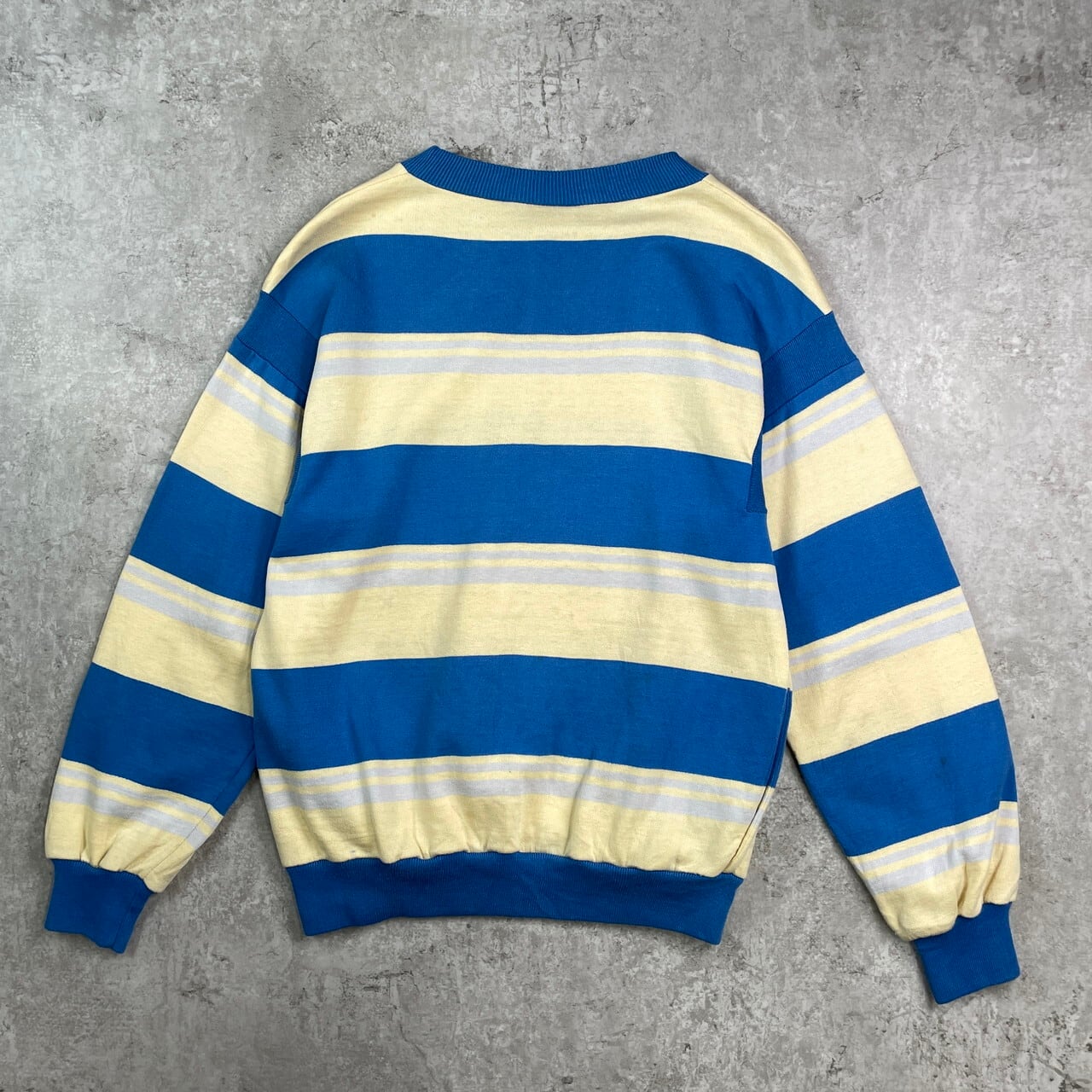 70~80年代 フランス製 Footing ボーダー スウェットシャツ メンズS相当 古着 70s 80s ヴィンテージ VINTAGE トレーナー サイドポケット ブルー ベージュ グレー【スウェット】/マルチカラー