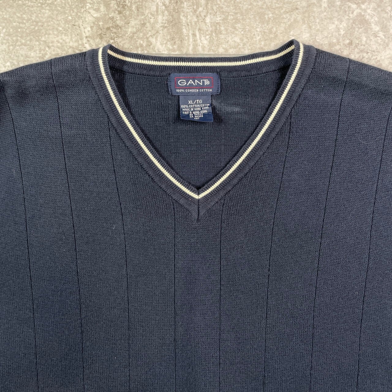 90年代 GANT Vネック コットンニットベスト メンズXL 古着 90s VINTAGE ヴィンテージ 紺色【ニットセーター】/ネイビー