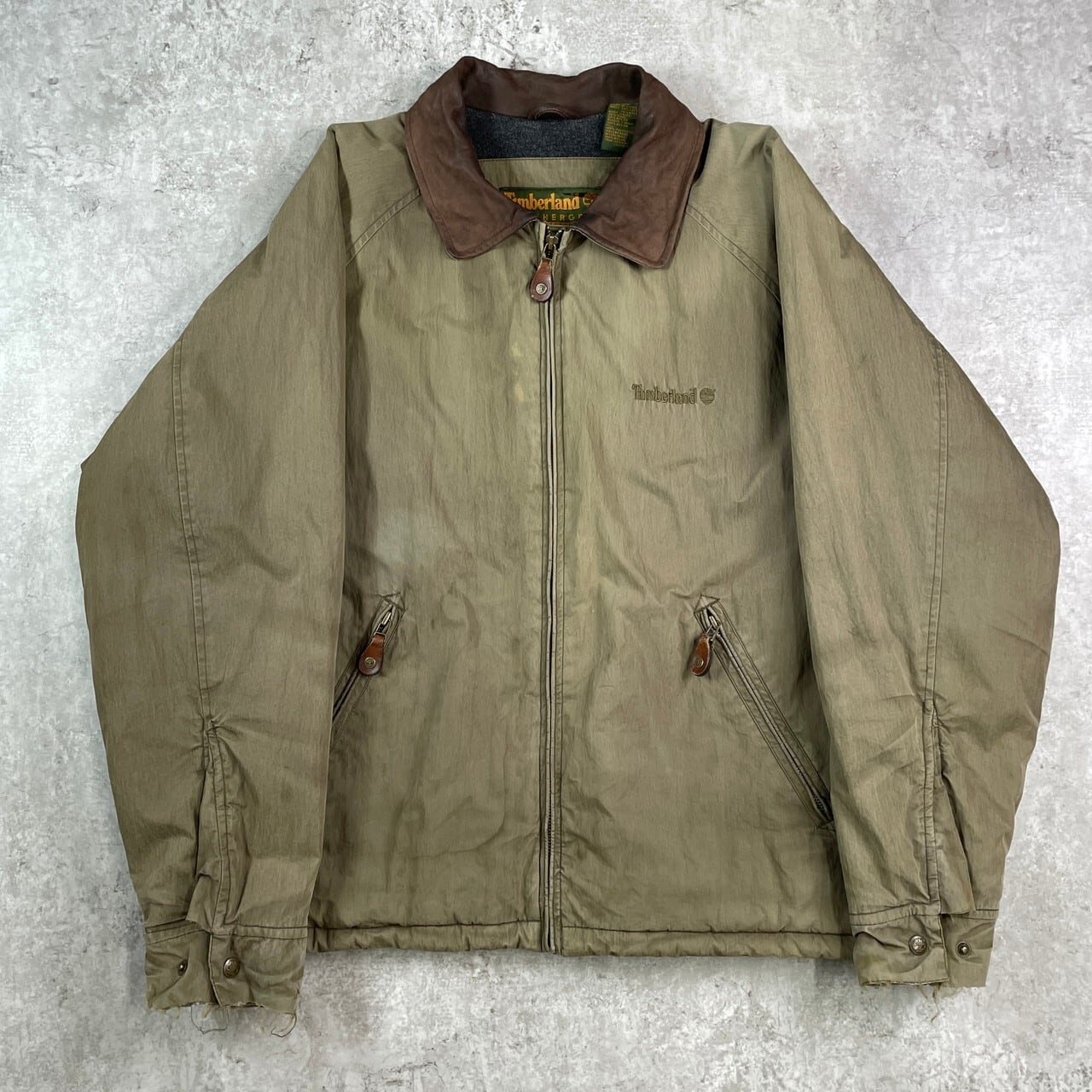 90年代 Timberland ティンバーランド WATERPROOF 襟レザー スイングトップ メンズXL相当 古着 90s VINTAGE ヴィンテージ ウールライナー 中綿入り ブルゾン【ナイロンジャケット】/カーキグリーン