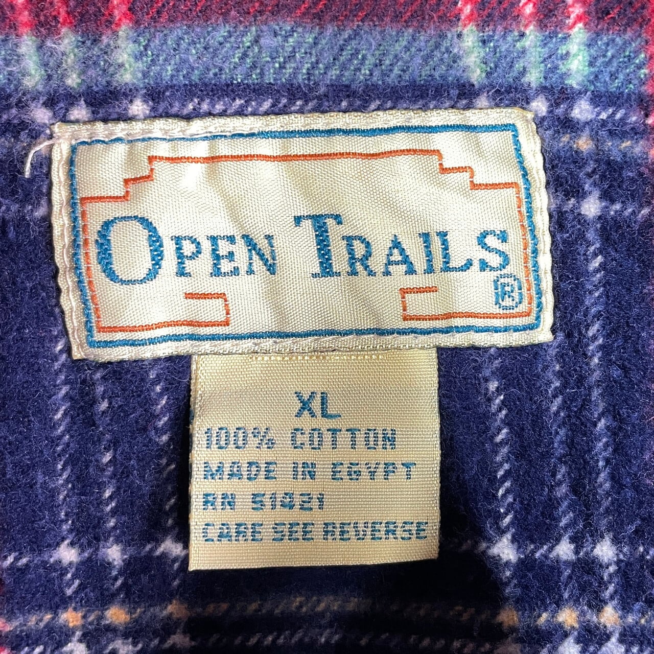 ■90年代 OPEN TRAILS チェック 長袖 プリントネル ボックスシャツ メンズXL 古着 90s VINTAGE ヴィンテージ プリネル フランネルシャツ ブルー レッド 青 赤【長袖シャツ】/マルチカラー