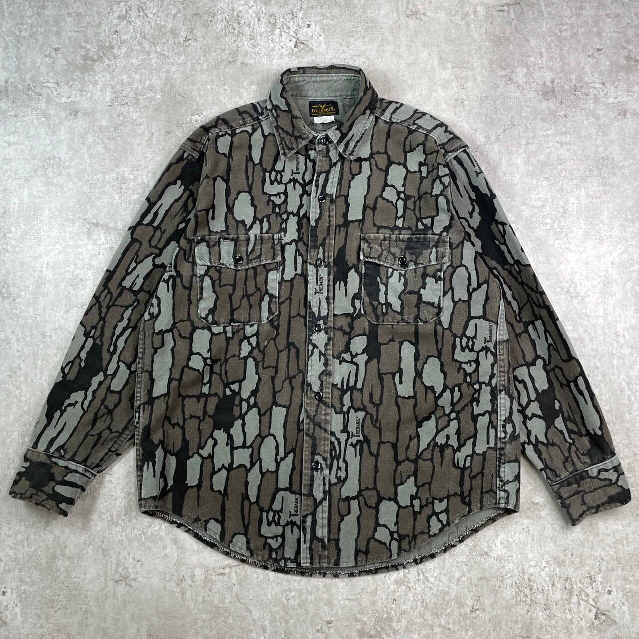 90年代 USA製 DEERSKIN TREBARKカモ 長袖 シャモアクロスシャツ メンズL 古着 90s ヴィンテージ VINTAGE 迷彩 総柄 カモフラ ハンティング【長袖シャツ】/マルチカラー