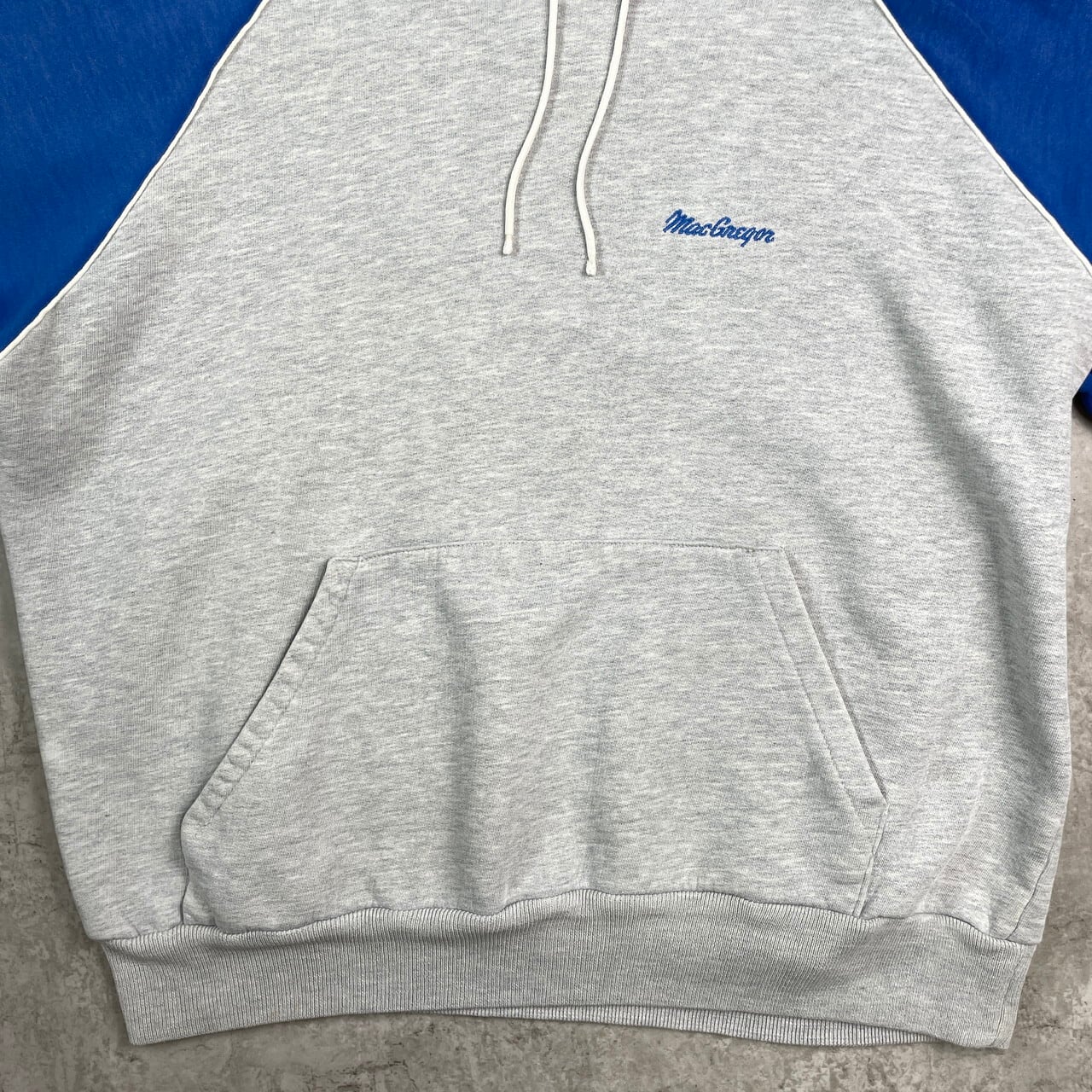 90年代 Mac Gregor ワンポイントロゴ刺繡 スウェットパーカー メンズM 古着 90s VINTAGE ヴィンテージ フーディー ツートン ダブルフェイスフード ライトグレー ブルー【パーカー】/グレー