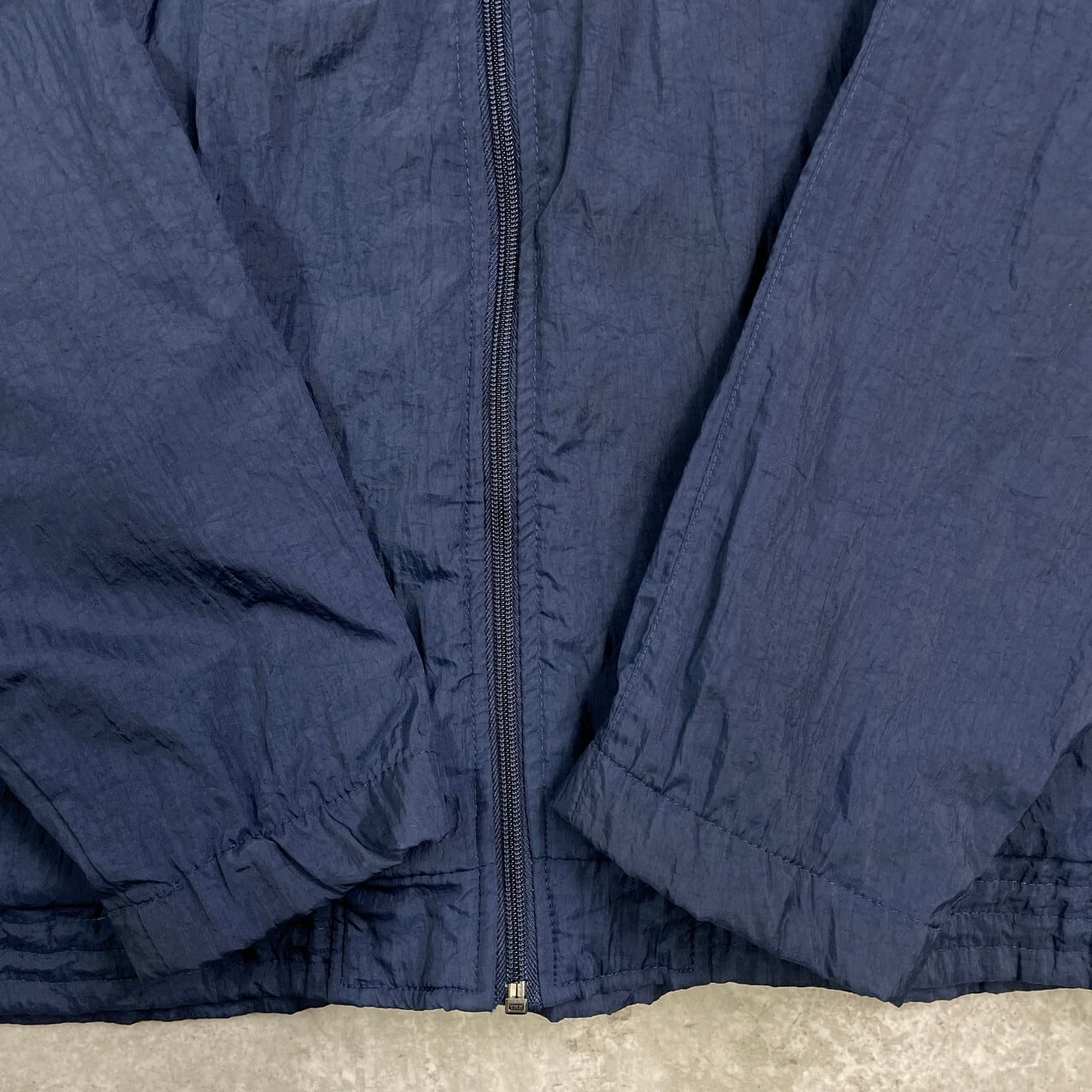 80年代 adidas アディダス ロゴ刺繍 ナイロンジャケット メンズXL相当 古着 80S VINTAGE ヴィンテージ フード収納型 ホワイト 紺色 白【ナイロンジャケット】/ネイビー