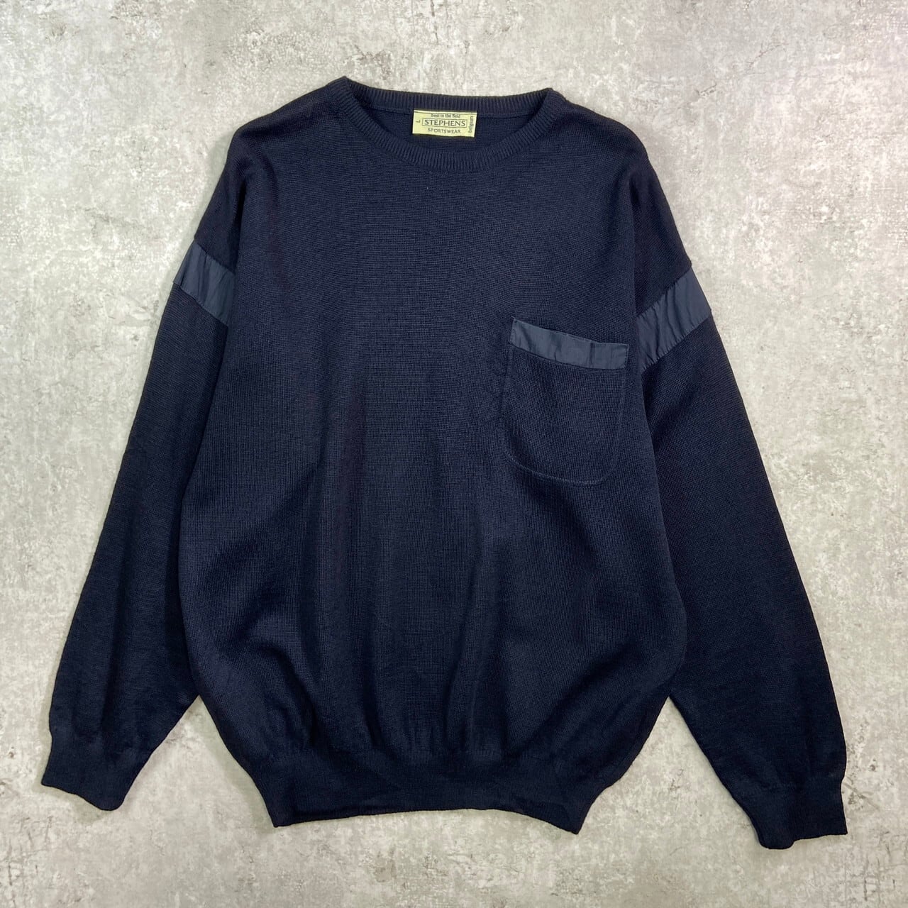 ベルギー製 STEPHENS ユーロ コマンドセーター メンズXL相当 古着 ミリタリー ポケット 紺色【ニットセーター】/ネイビー