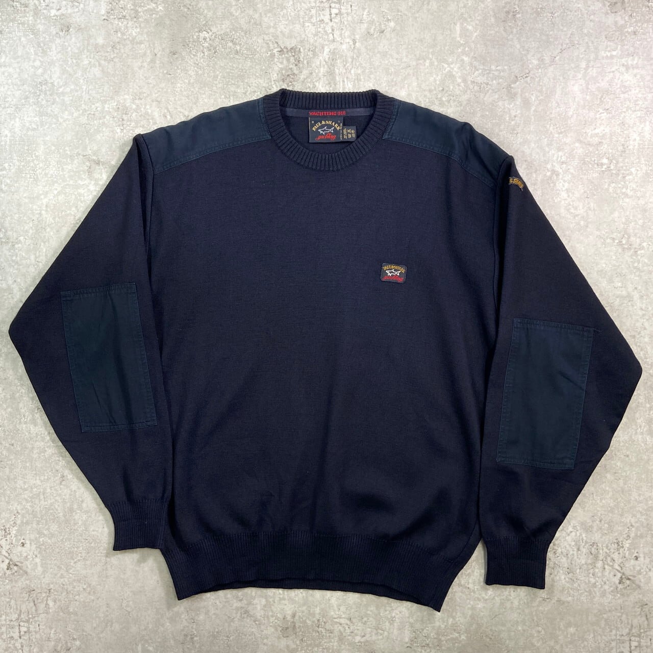 ■イタリア製 PAUL & SHARK ポールアンドシャーク ユーロ コマンドセーター メンズL 古着 ミリタリー 紺色【ニットセーター】/ネイビー