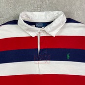 訳あり特価 90年代 Polo by Ralph Lauren ポロバイラルフローレン ボーダー 長袖 ラガーシャツ メンズ2XL 古着 90s VINTAGE ヴィンテージ ビッグサイズ 大きいサイズ ホワイト レッド ネイビー 白 赤 紺色【ポロシャツ・ラガーシャツ】/マルチカラー