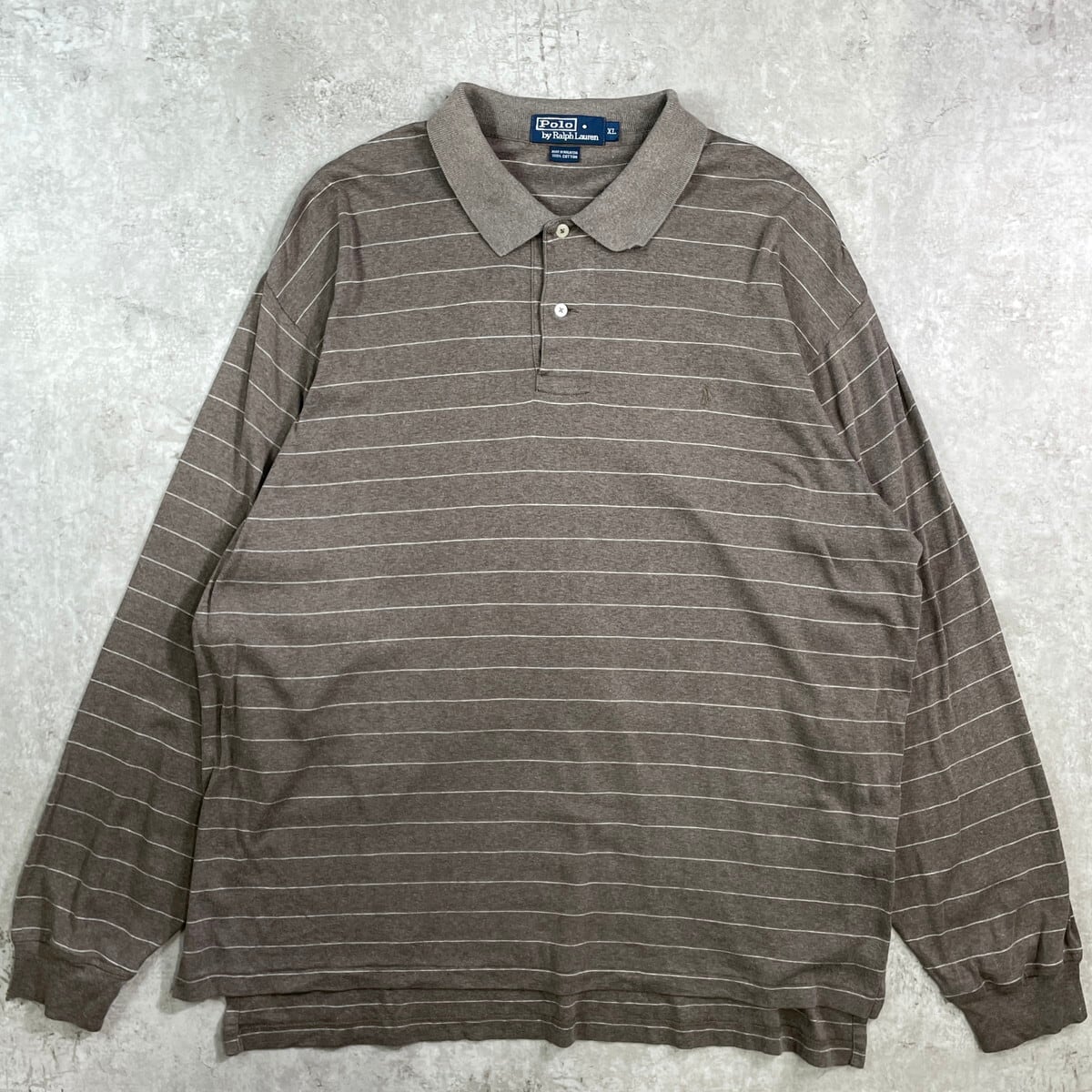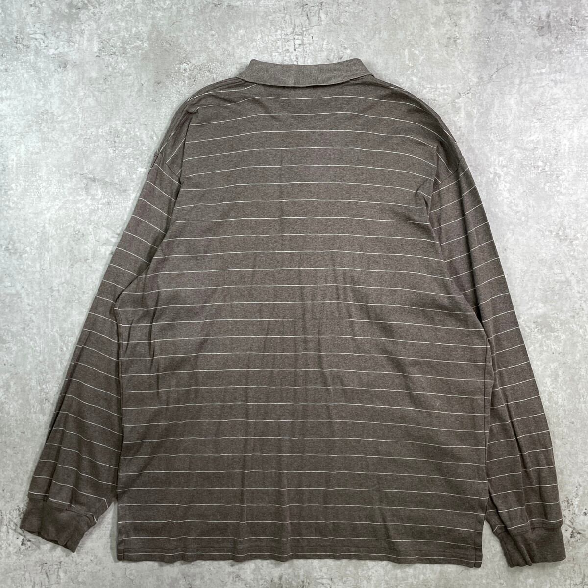 ■Polo by Ralph Lauren ポロバイラルフローレン ボーダーポロシャツ メンズXL 古着 ワンポイントロゴ刺繍 ライトブラウン【ポロシャツ・ラガーシャツ】/ブラウン