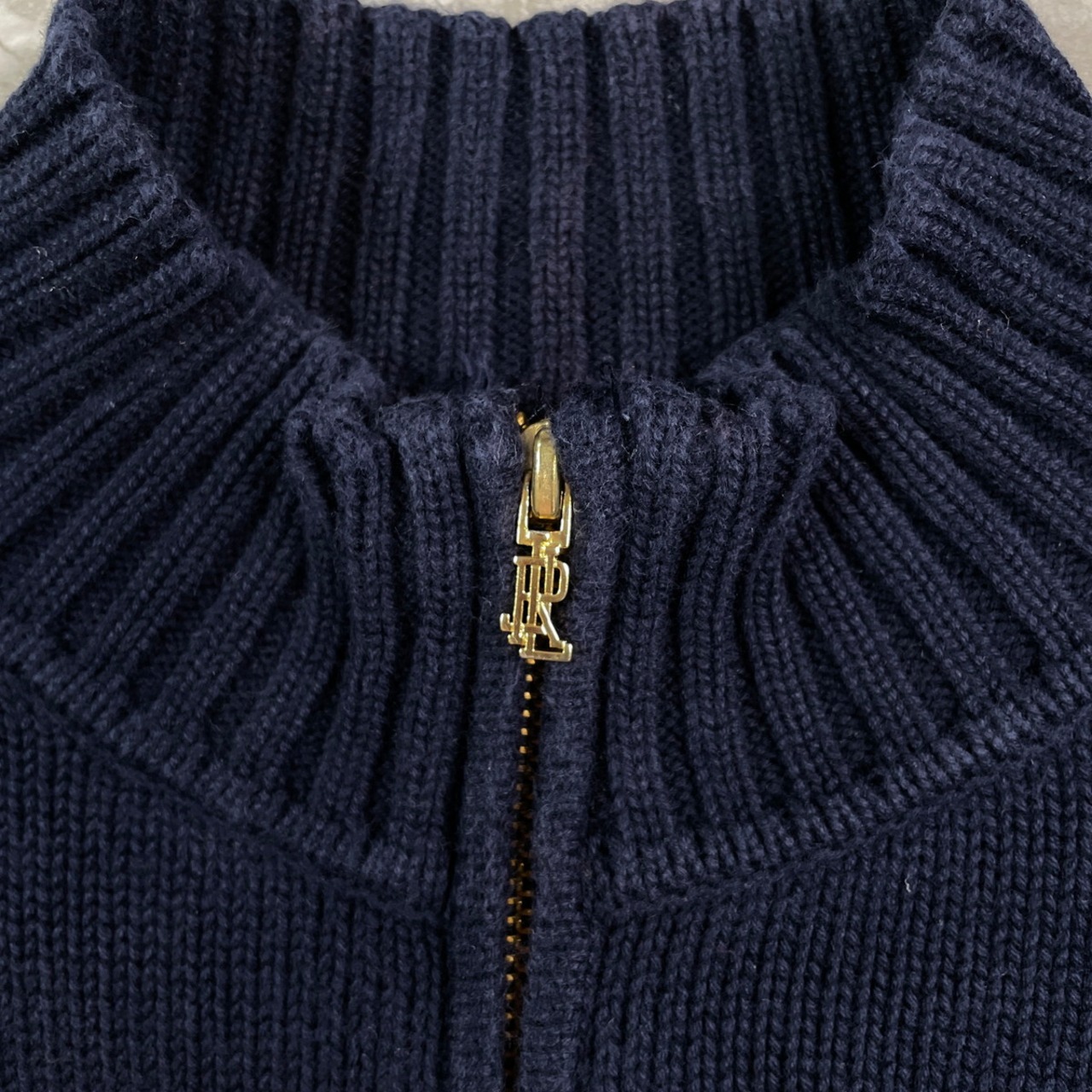 LAUREN RALPH LAUREN PETITE ハーフジップ ニットセーター レディースXS相当 古着 ワンポイントロゴ刺? ハイネック 紺色【ニットセーター】/ネイビー【BS25-30b】