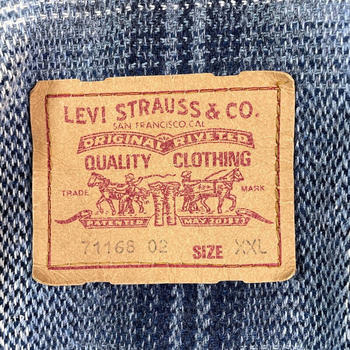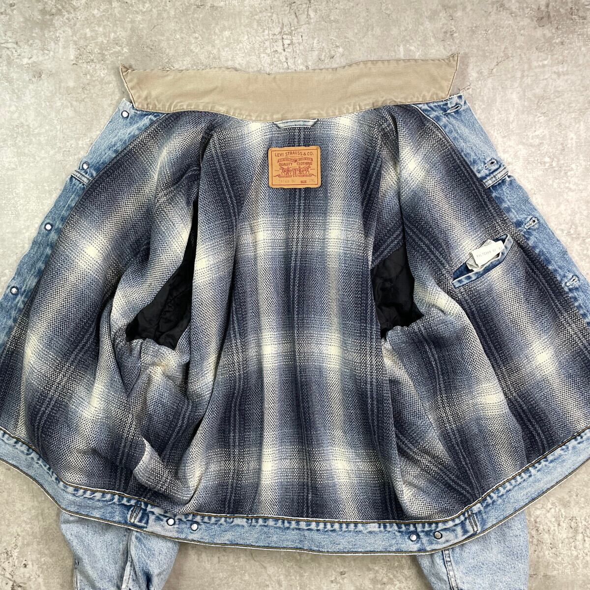 ■90年代 チュニジア製 Levi's ユーロリーバイス 71168 トラッカージャケット メンズ2XL 古着 90s VINTAGE ヴィンテージ アメカジ シャドウチェックライナー コーデュロイ襟 ビッグサイズ 大きいサイズ【デニムジャケット】/ブルー