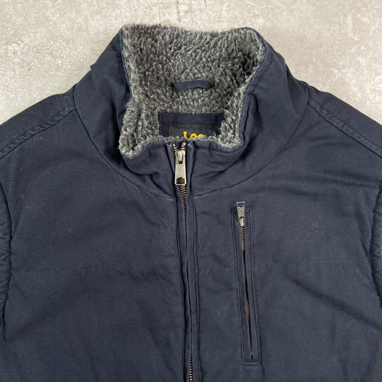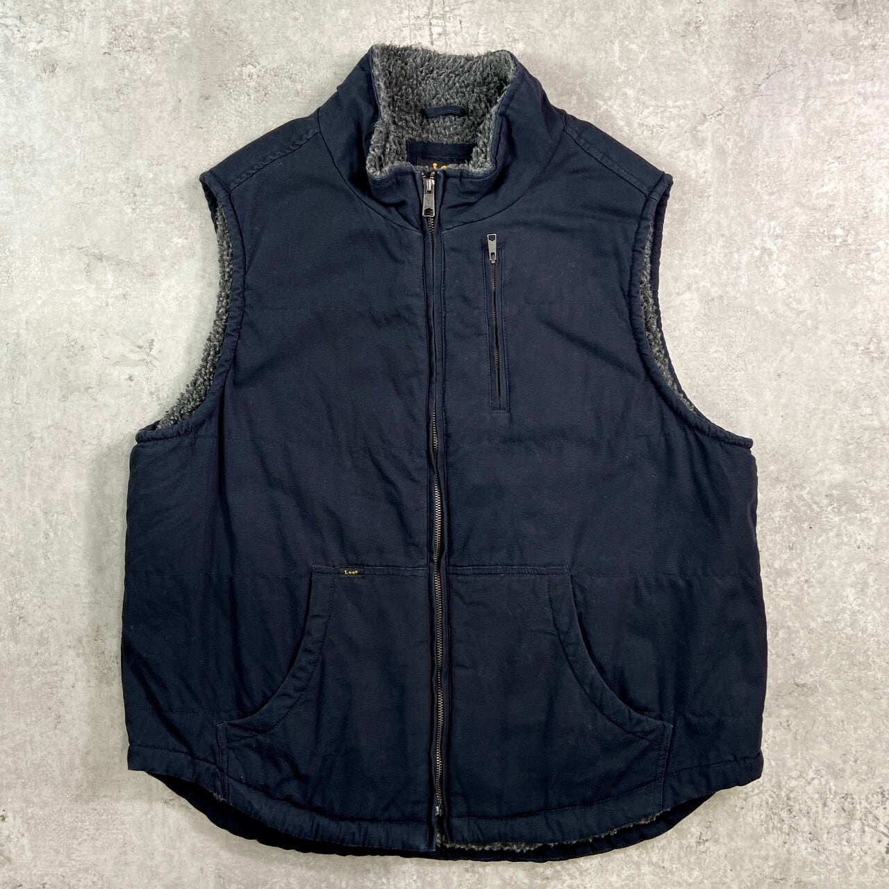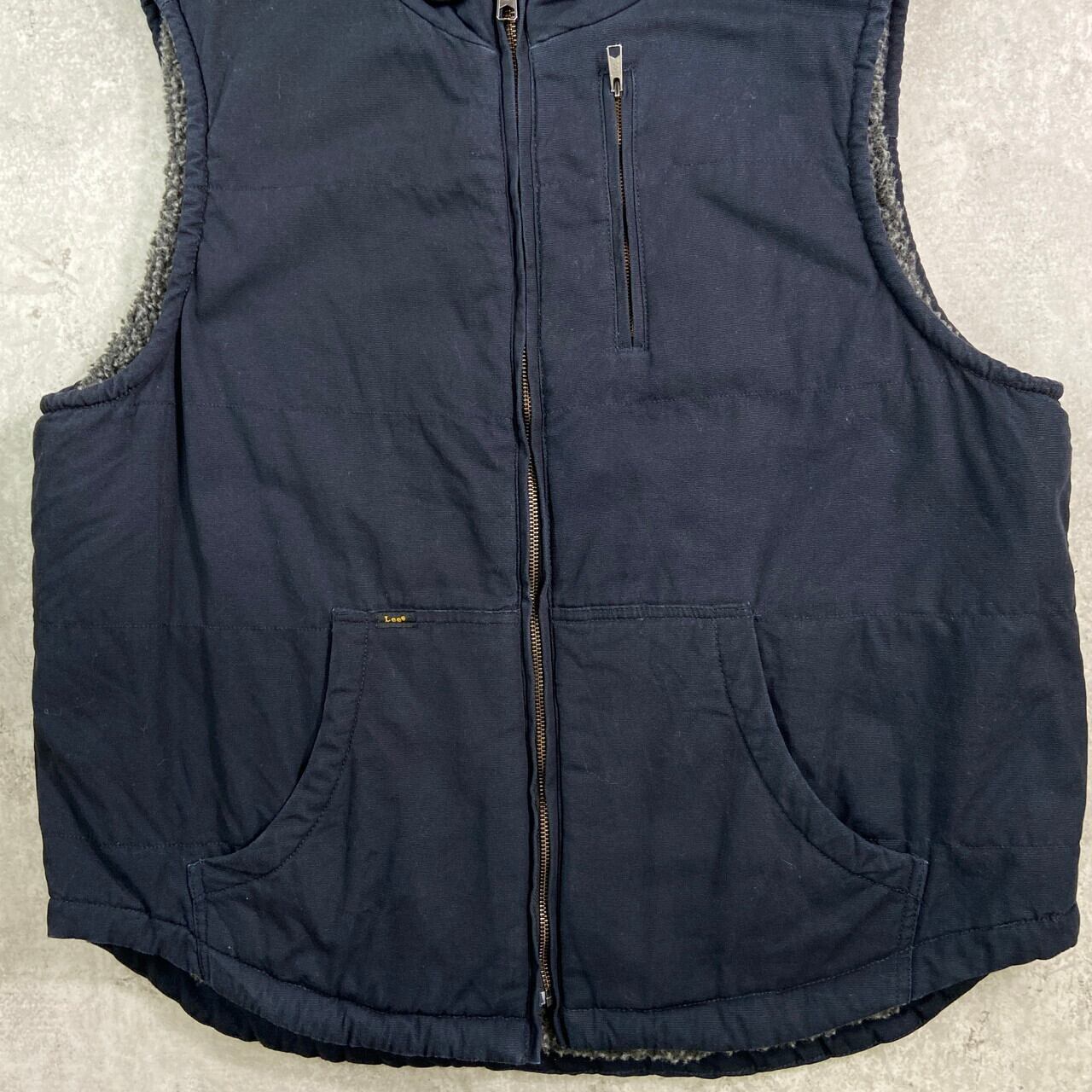 ■Lee リー 裏ボア ダックベスト メンズL 古着 ワークジャケット ボアライナー 黒【ベスト】/ブラック