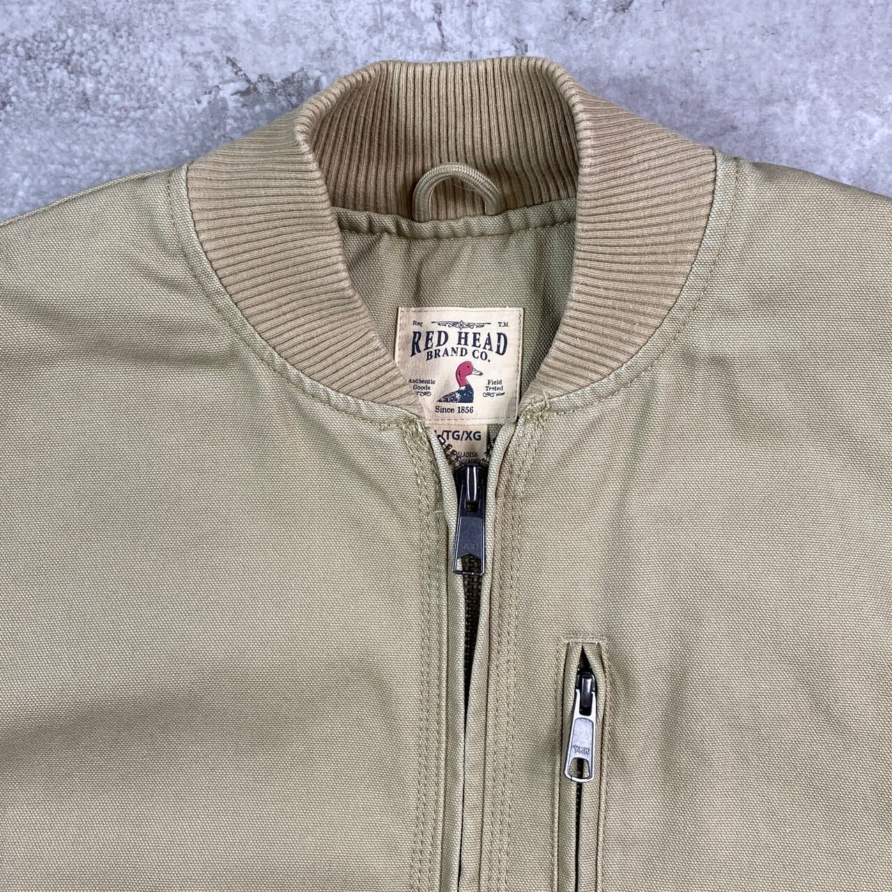 ■RED HEAD レッドヘッド ダックベスト メンズXL 古着 ワークジャケット キルティングライナー【ベスト】/ベージュ