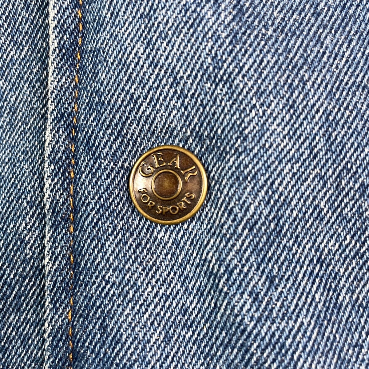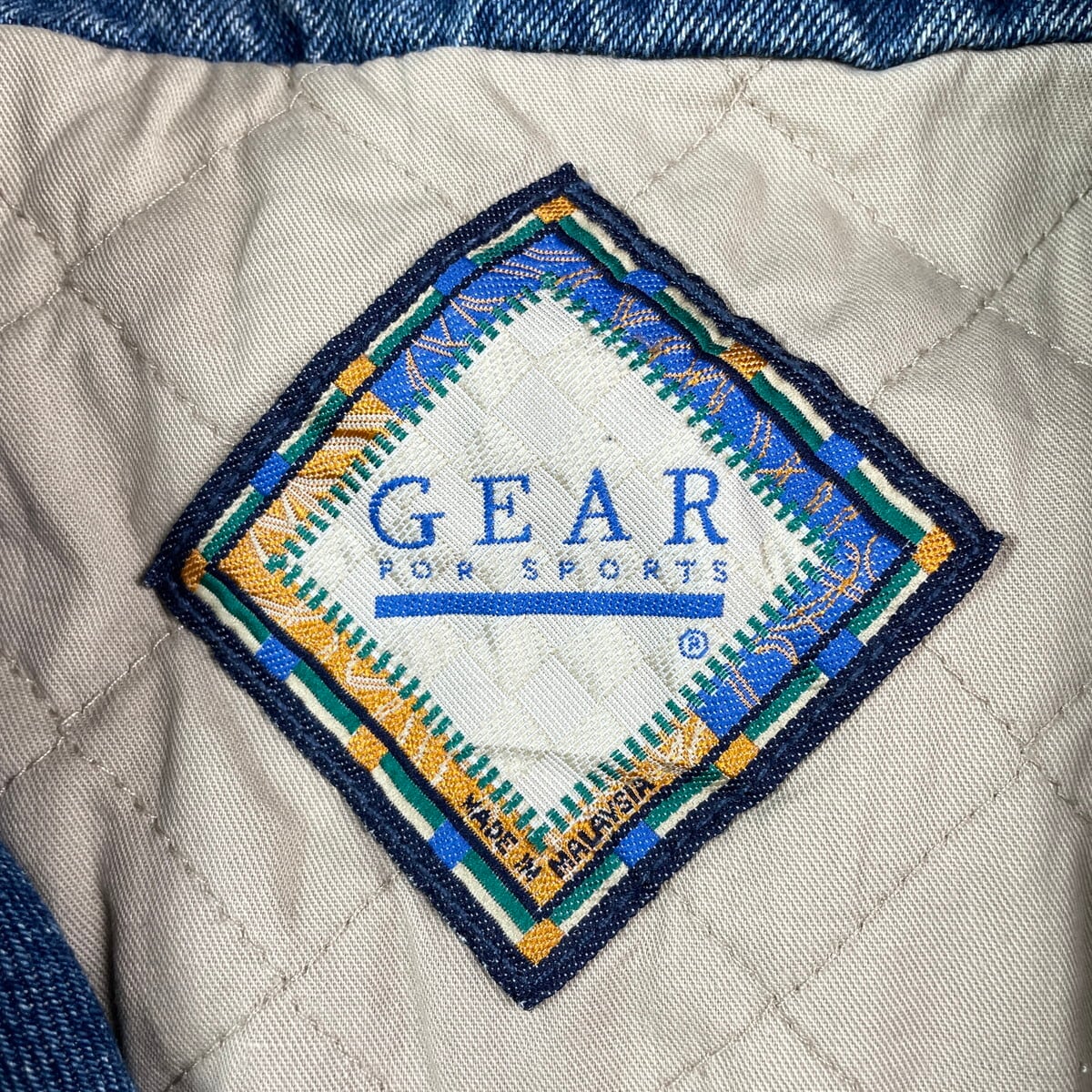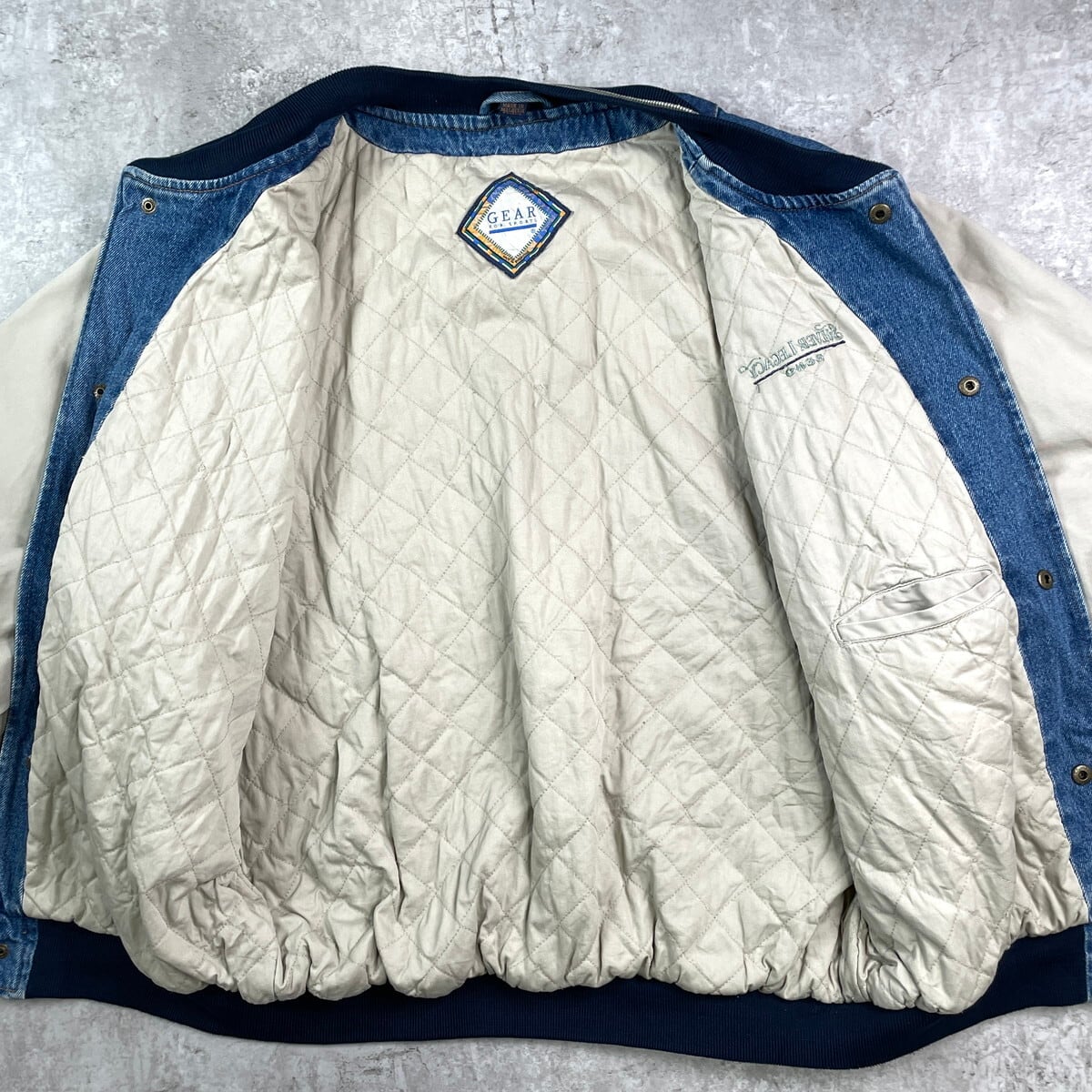 90年代 GEAR FOR SPORTS 企業ロゴ刺繍 デニムスタジャン メンズXL相当 古着 90s ヴィンテージ VINTAGE キルティングライナー ベージュ 青色【デニムジャケット】/ブルー【BS25-30b】