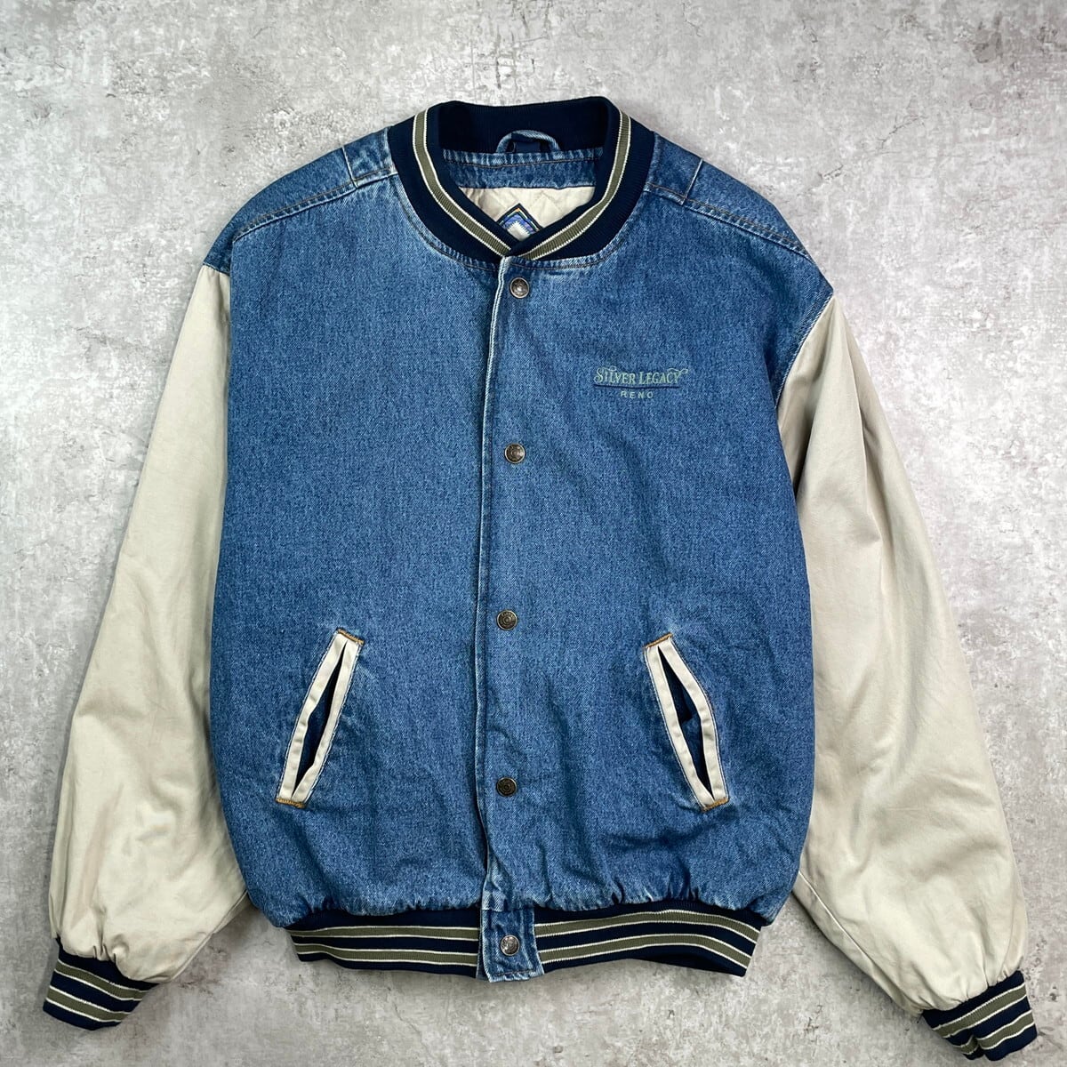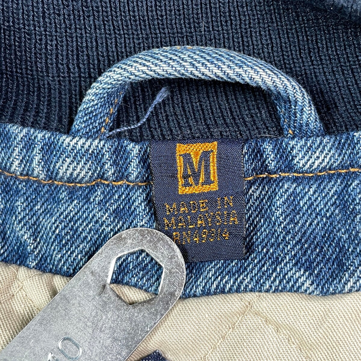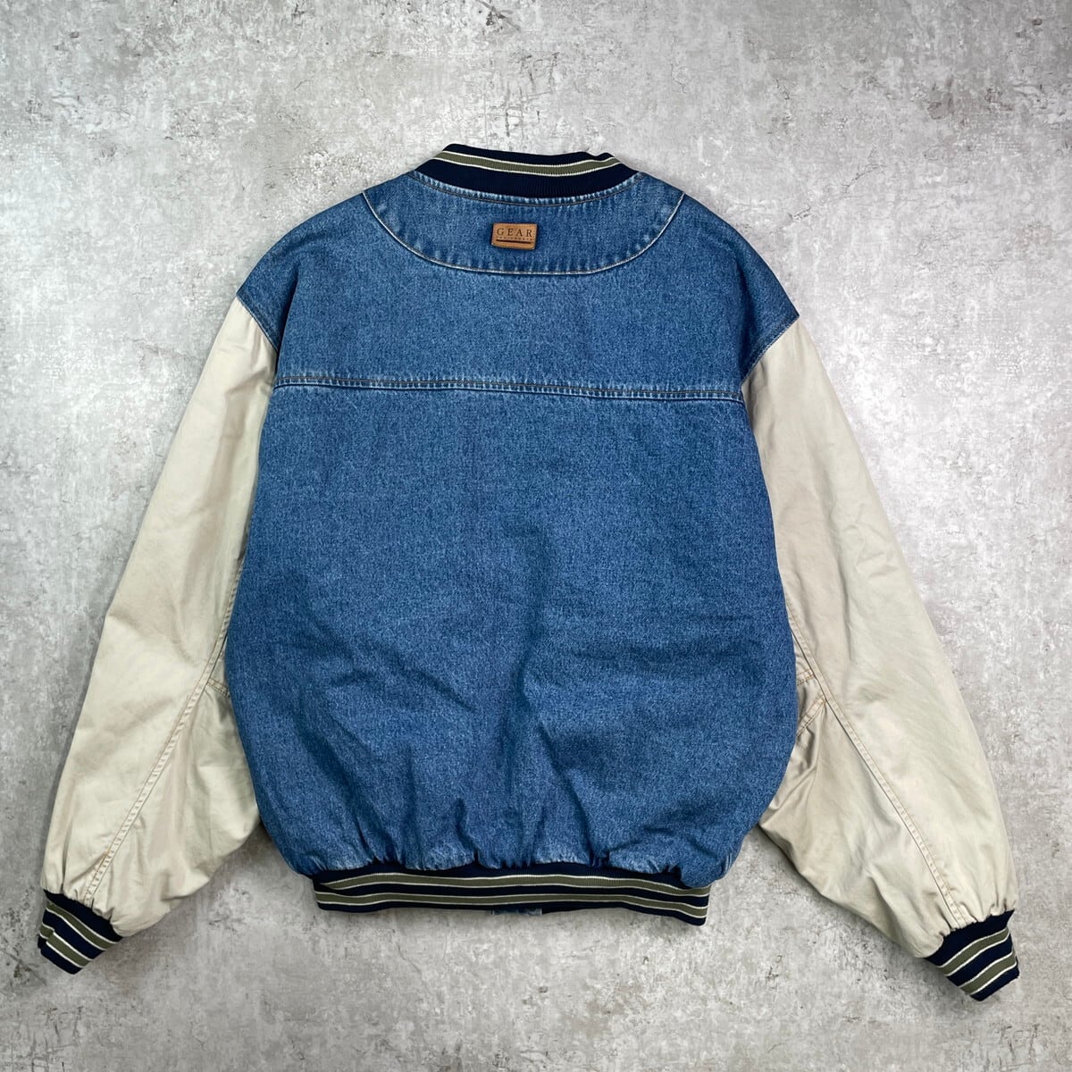 90年代 GEAR FOR SPORTS 企業ロゴ刺繍 デニムスタジャン メンズXL相当 古着 90s ヴィンテージ VINTAGE キルティングライナー ベージュ 青色【デニムジャケット】/ブルー【BS25-30b】