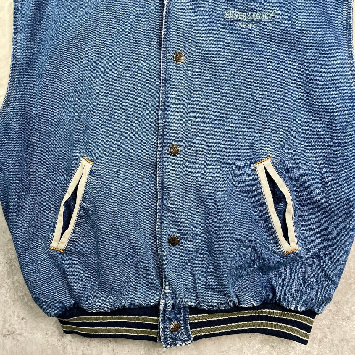 ■90年代 GEAR FOR SPORTS 企業ロゴ刺繍 デニムスタジャン メンズXL相当 古着 90s ヴィンテージ VINTAGE キルティングライナー ベージュ 青色【デニムジャケット】/ブルー