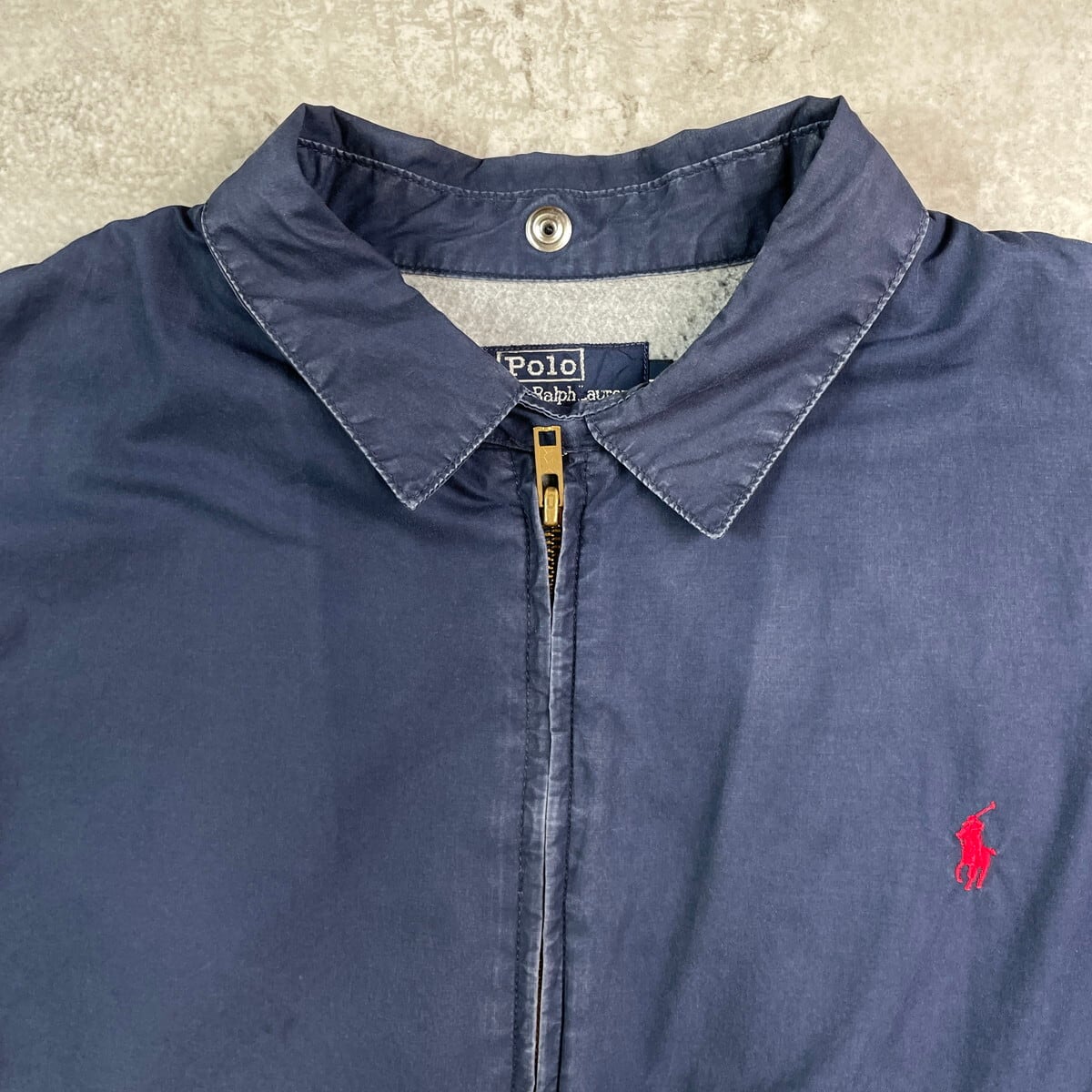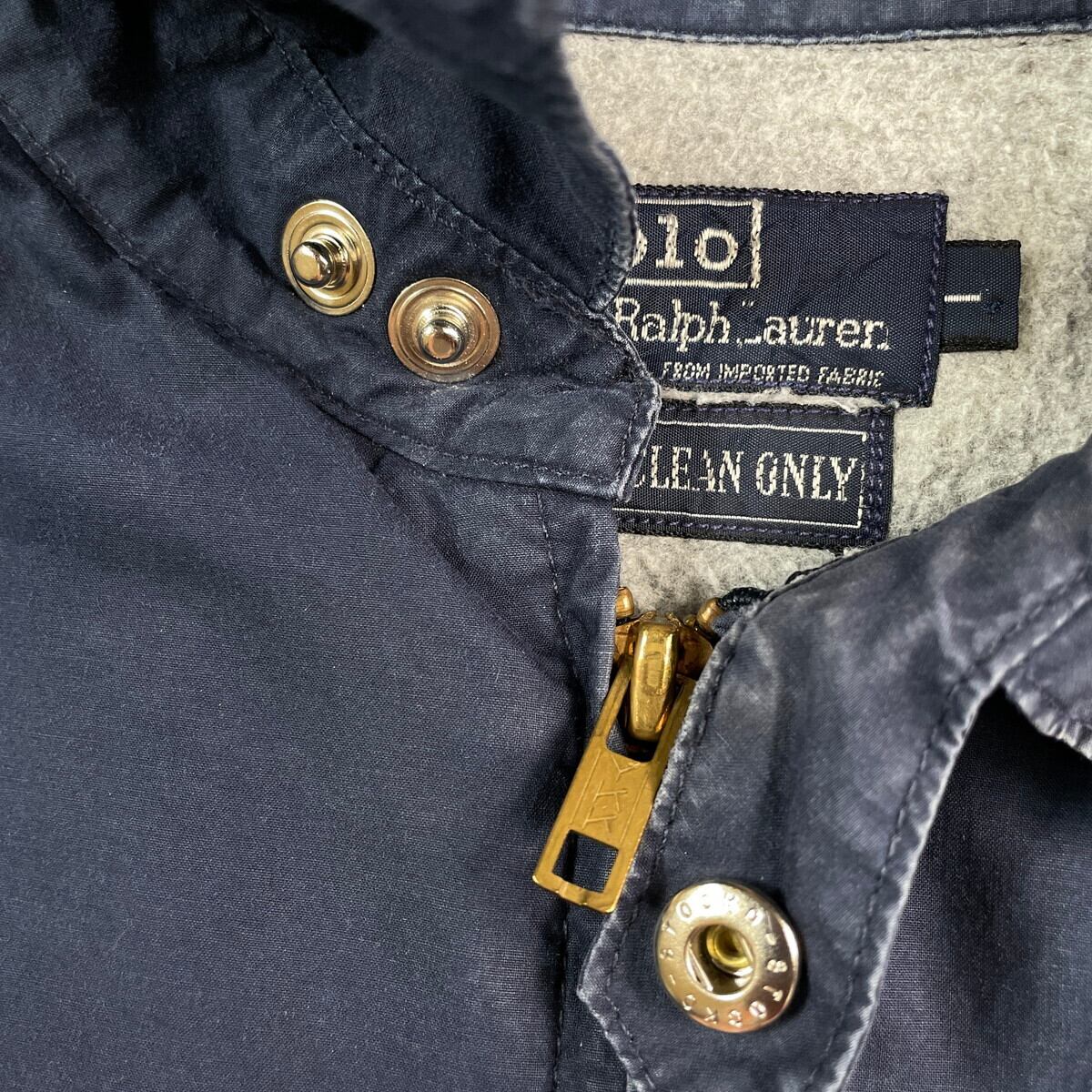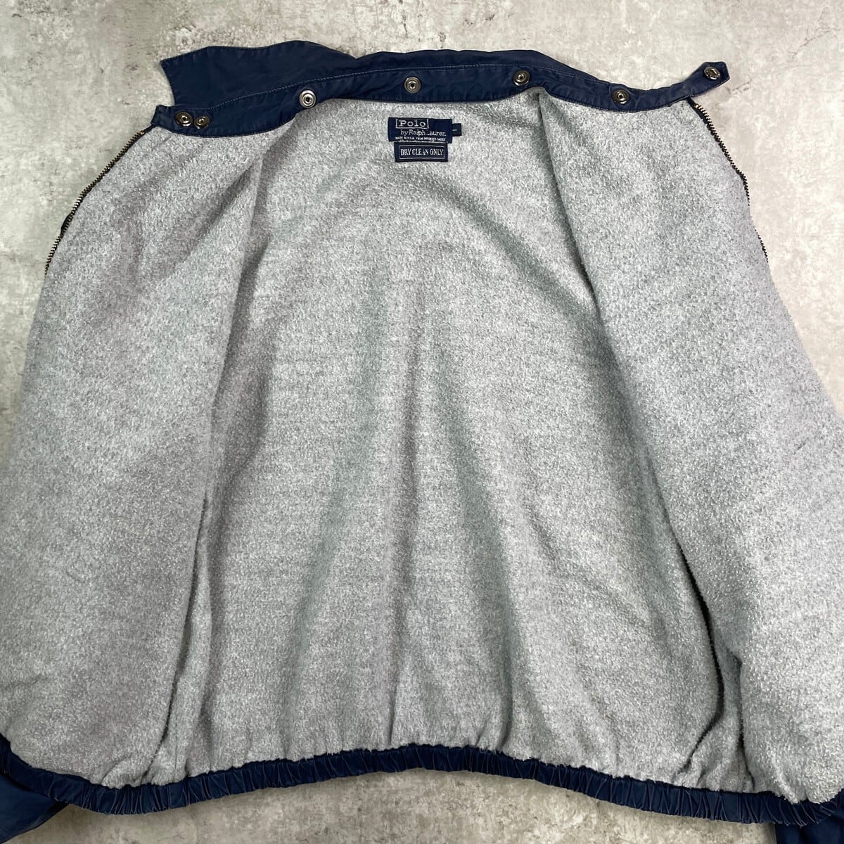 80年代 USA製 Polo by Ralph Lauren ポロバイラルフローレン スイングトップ チンスト付き 短丈 メンズL 古着 80s VINTAGE ヴィンテージ アメカジ 裏地フリース 紺色 【ブルゾン・ジャケット】/ネイビー