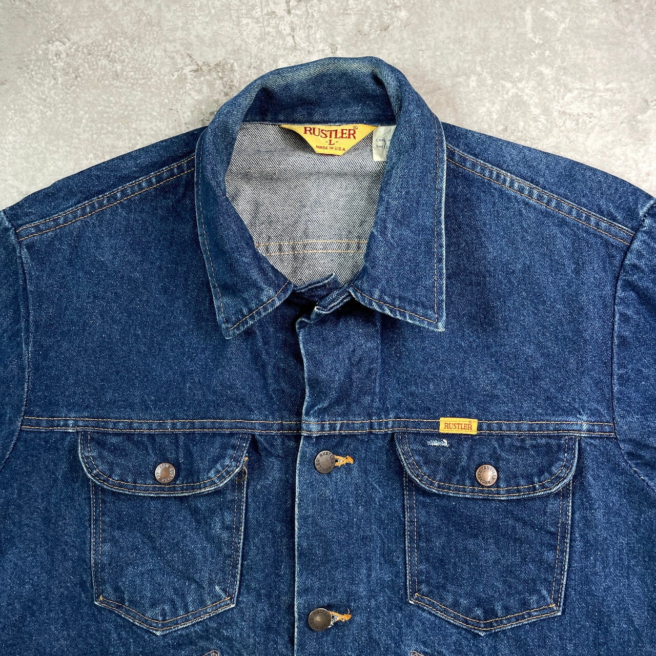 80年代 USA製 RUSTLER ラスラー 濃紺 デニムジャケット メンズL 古着 80s VINTAGE ヴィンテージ トラッカージャケット【デニムジャケット】/ネイビー